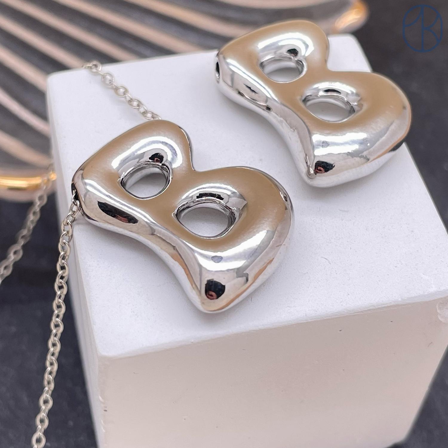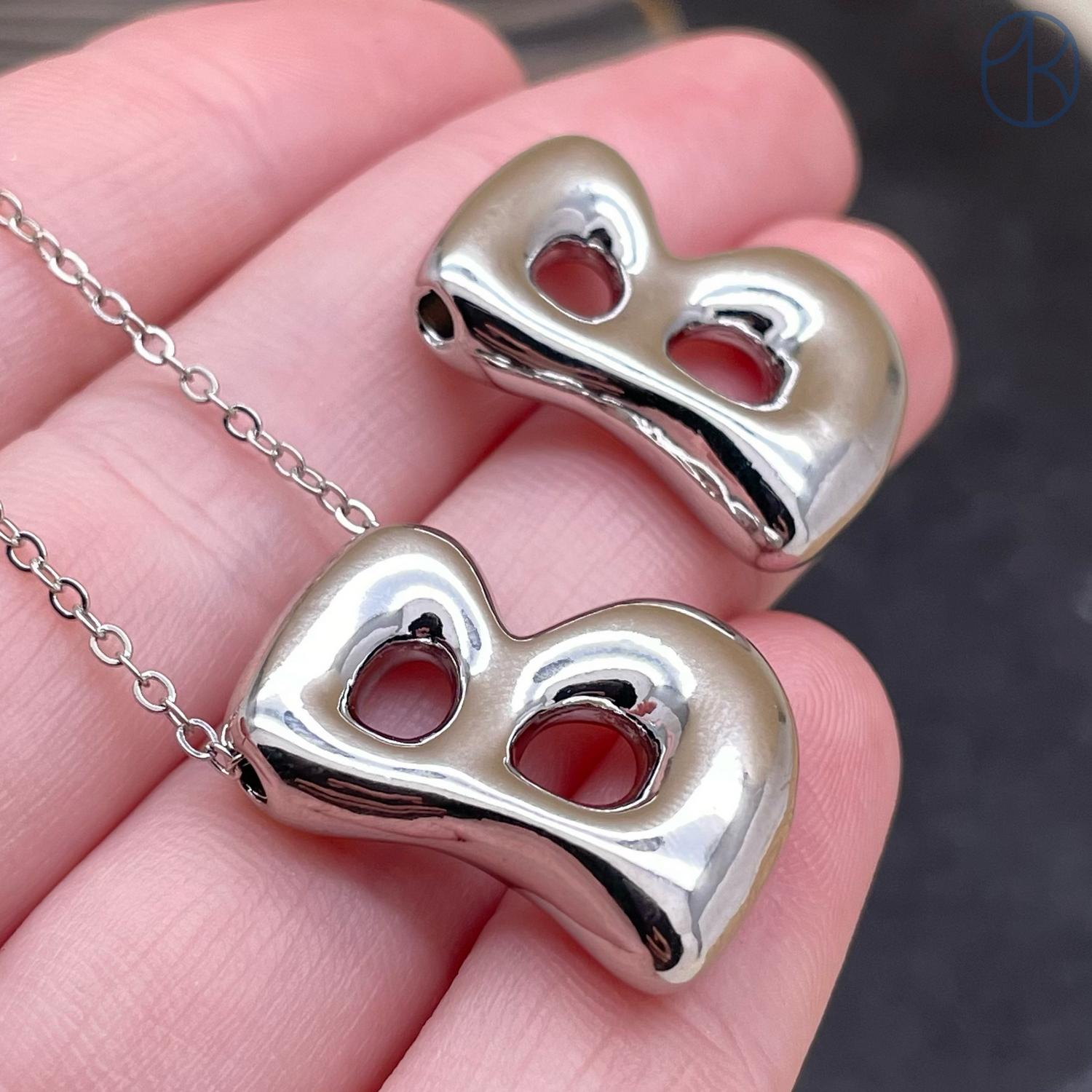 Подвеска-бусина буква B, цвет серебро 21 мм