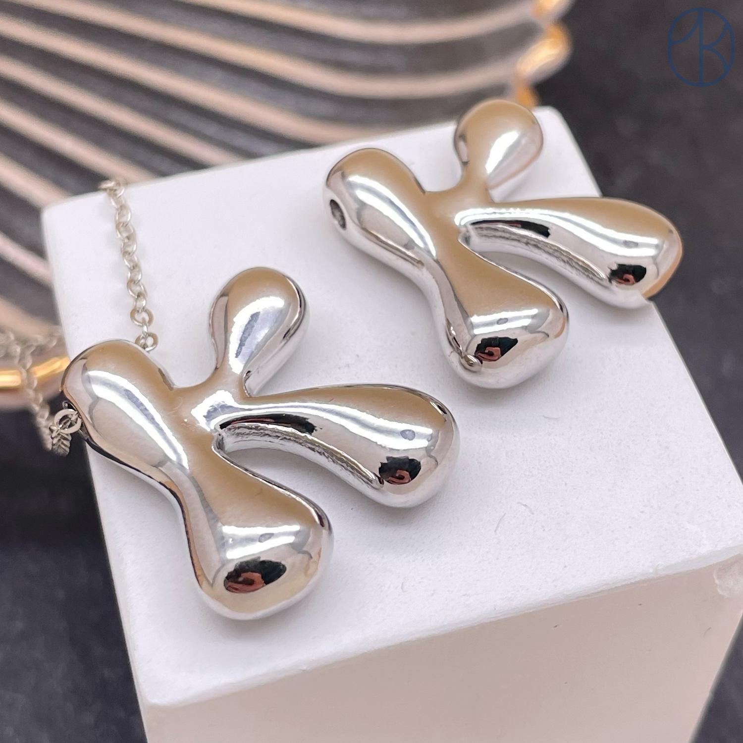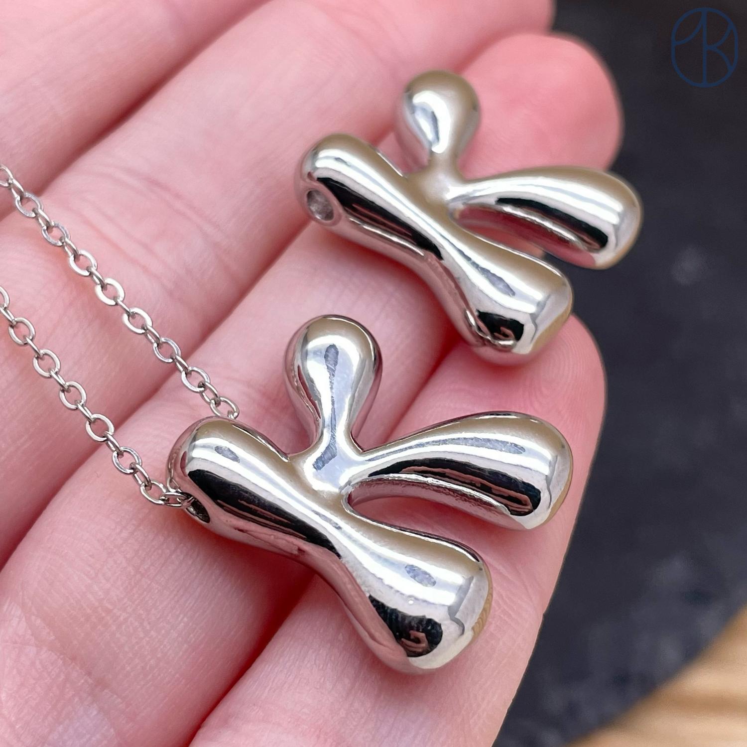 Подвеска-бусина буква K, цвет серебро 21 мм
