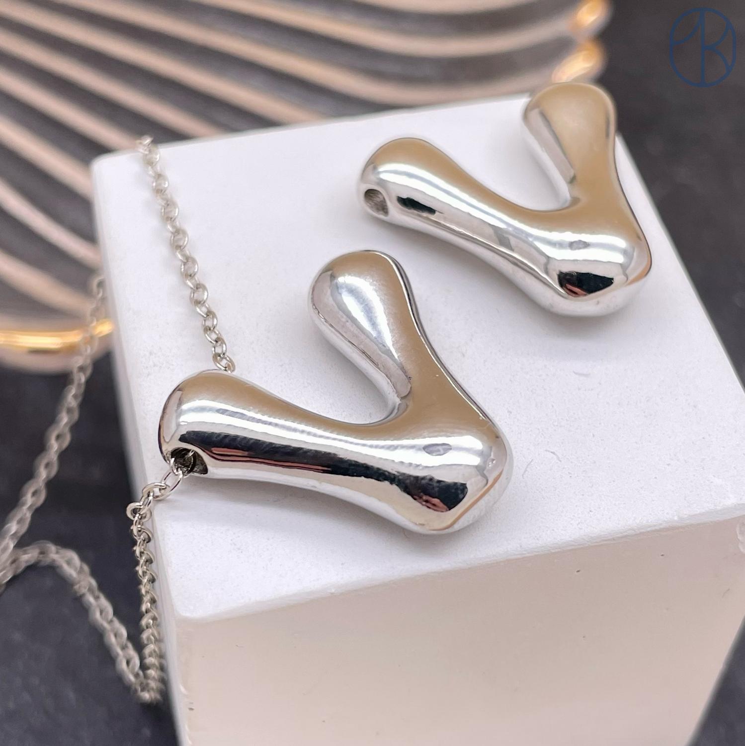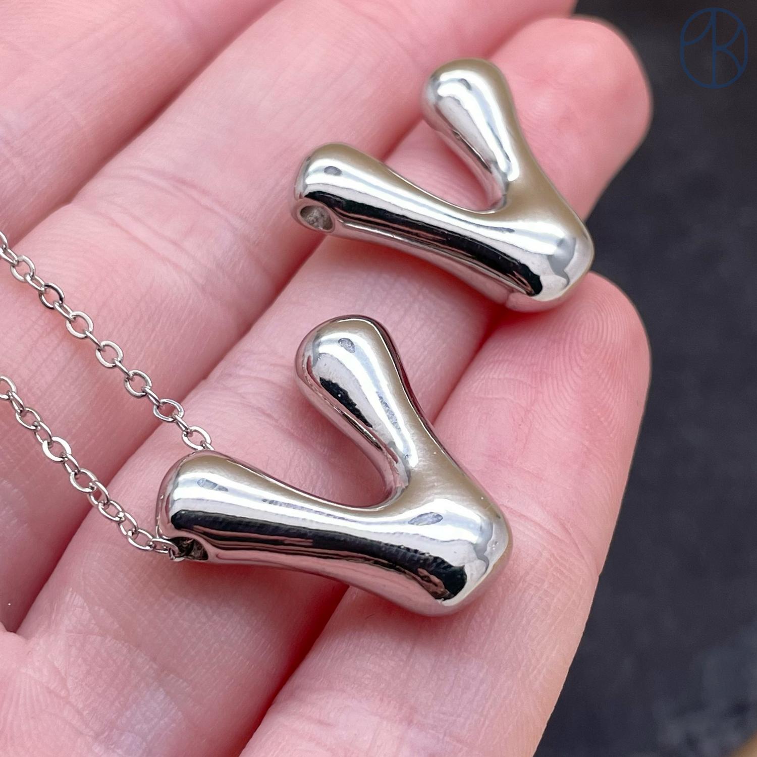 Подвеска-бусина буква V, цвет серебро 21 мм