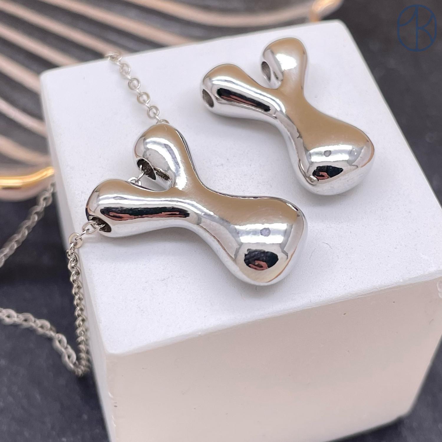 Подвеска-бусина буква Y, цвет серебро 21 мм