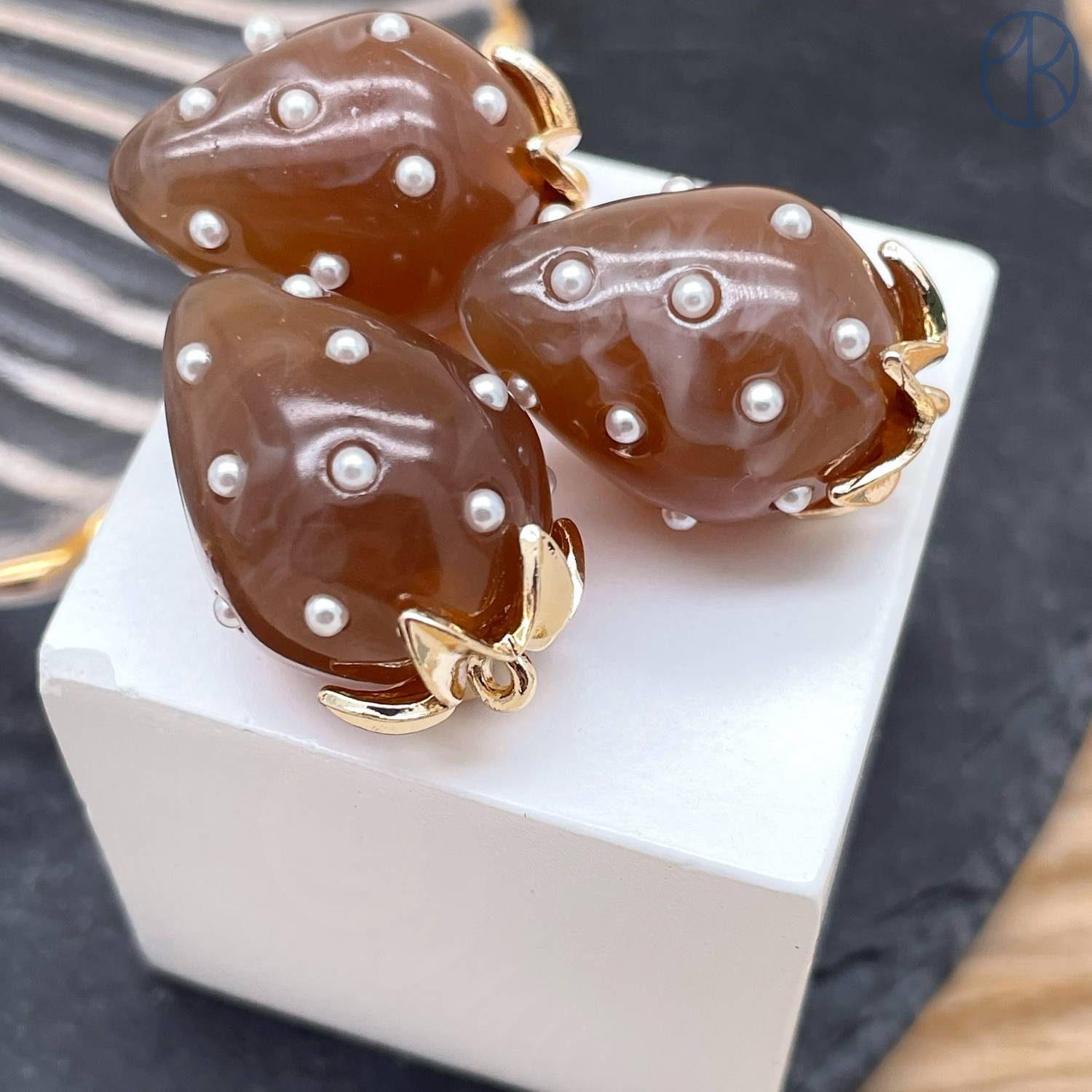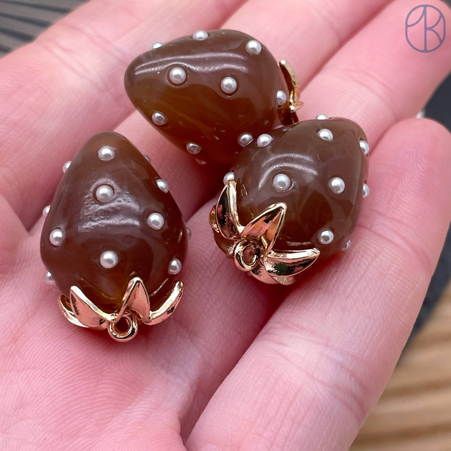 Подвеска клубника коричневая, цвет золото 25х16 мм