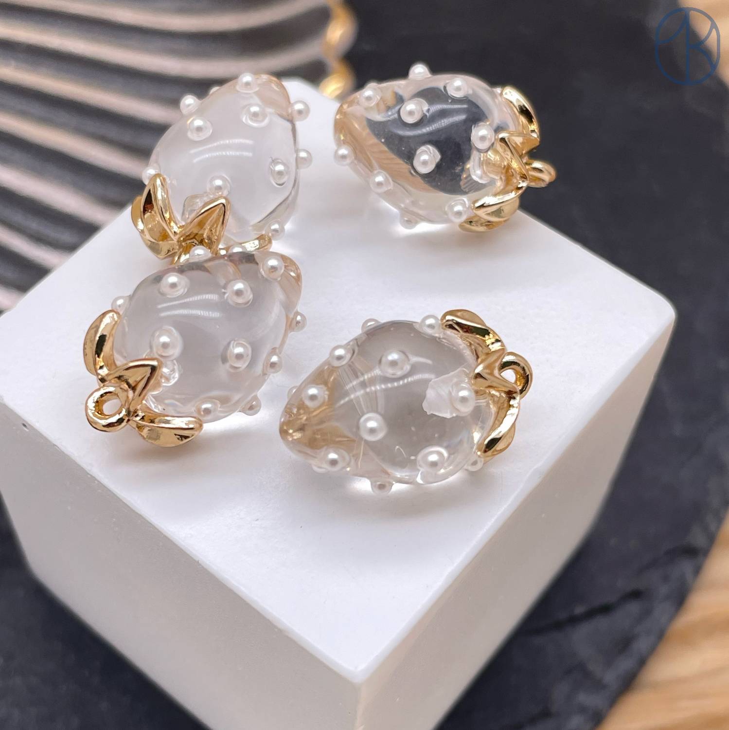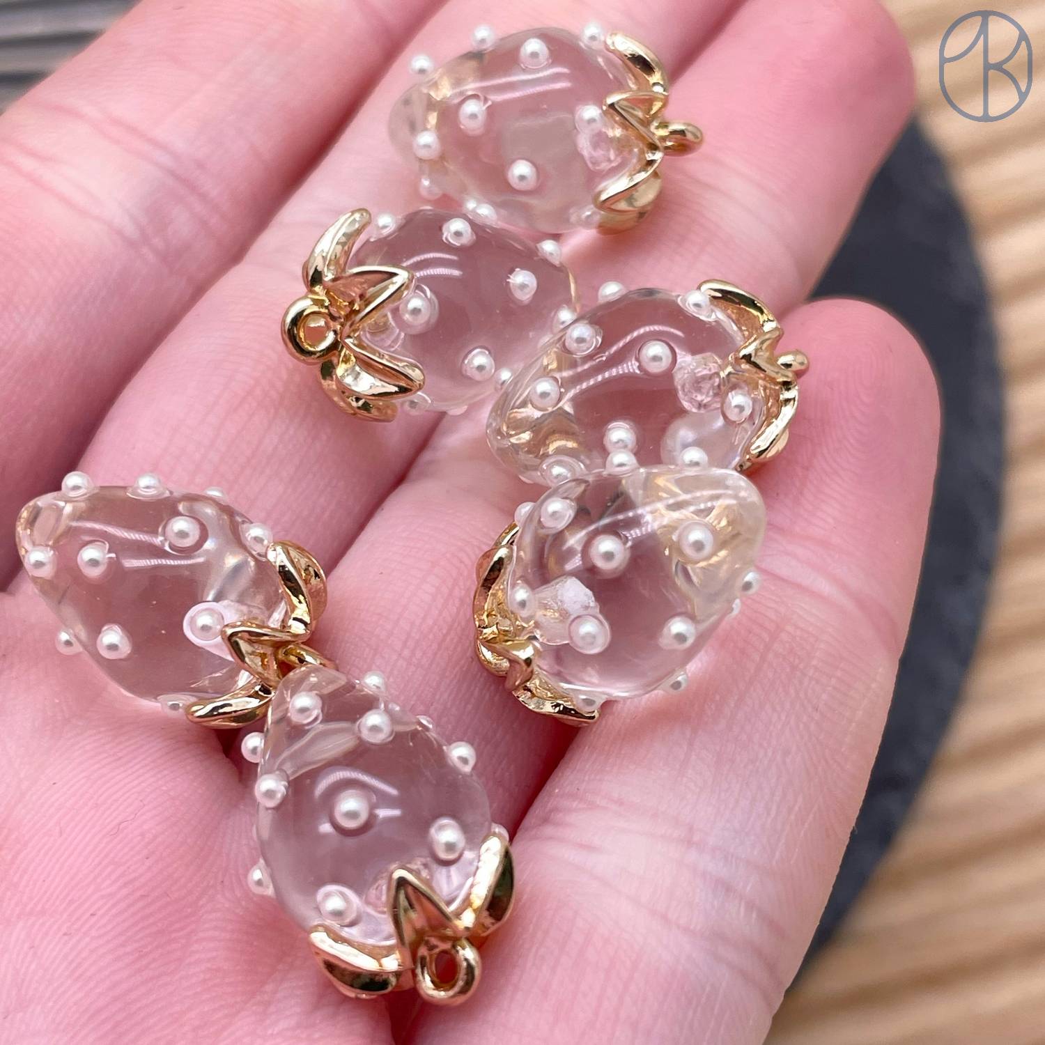 Подвеска клубника прозрачная, цвет золото 17х12 мм