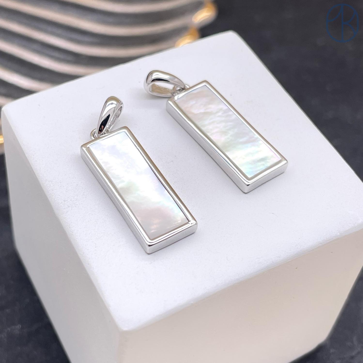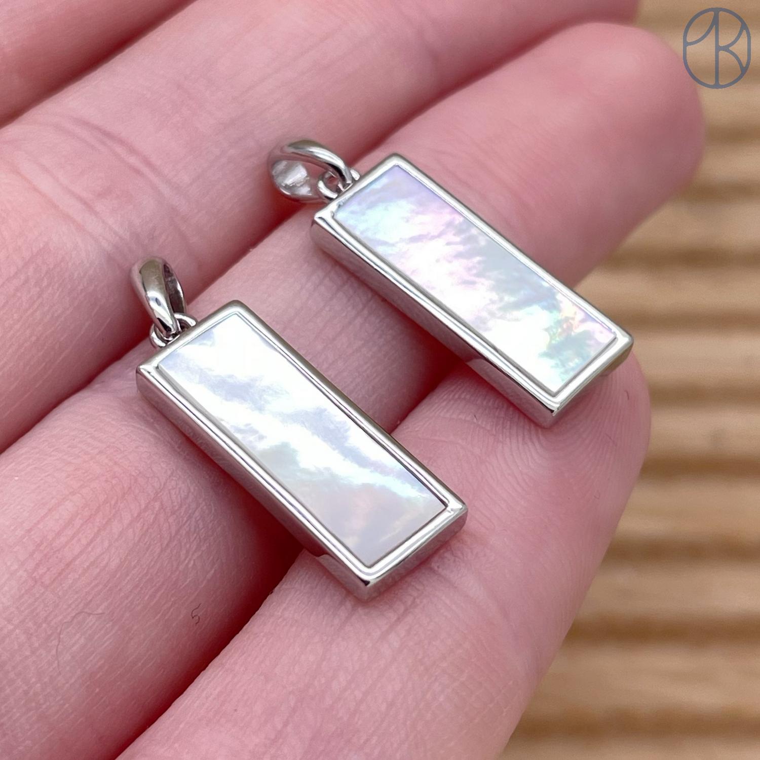 Подвеска прямоугольник перламутр, цвет серебро 20х8 мм