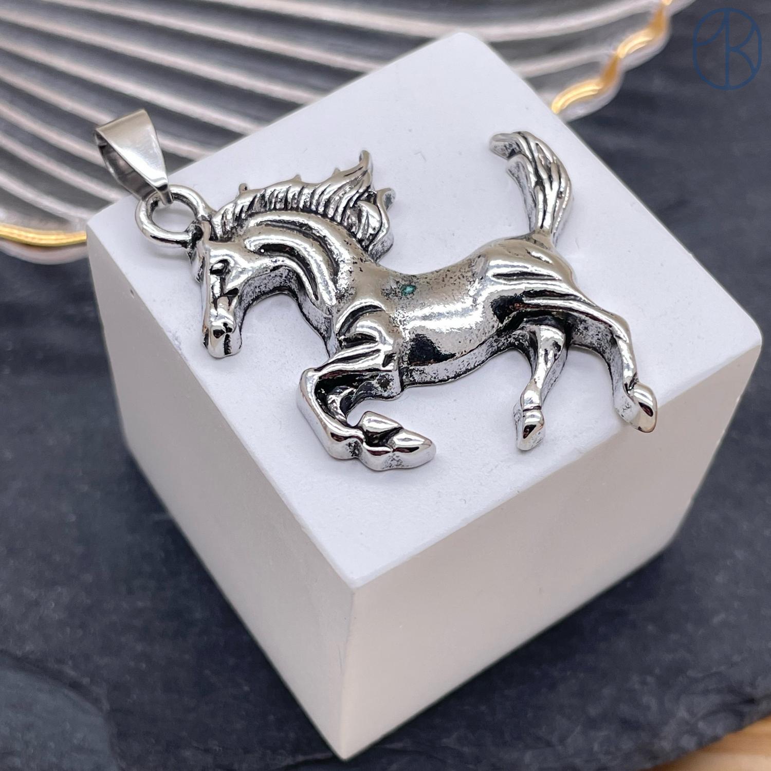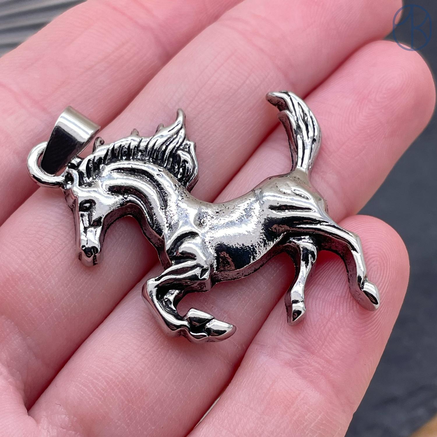 Подвеска лошадь, цвет серебро 29х34