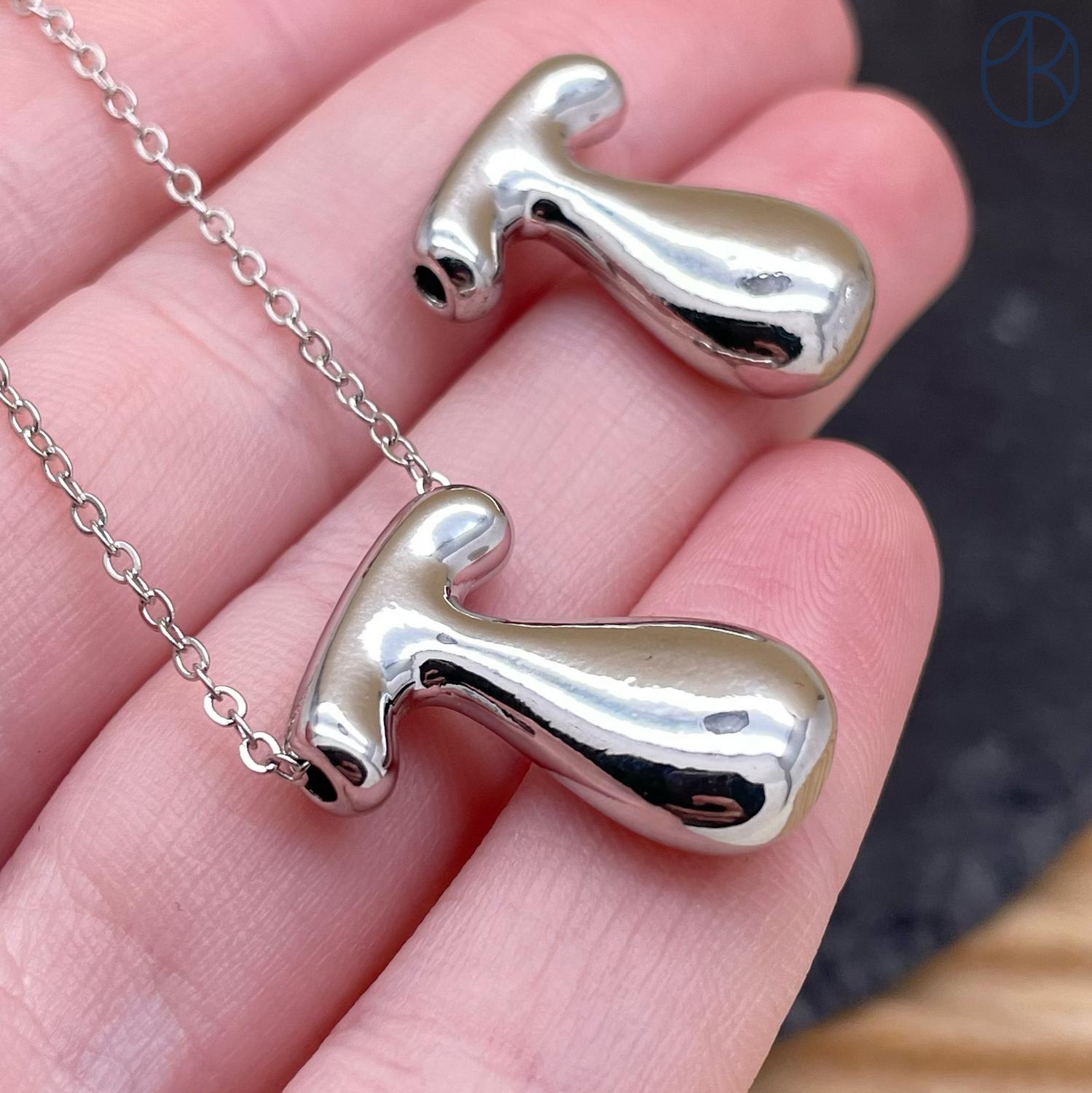 Подвеска-бусина буква T, цвет серебро 21 мм