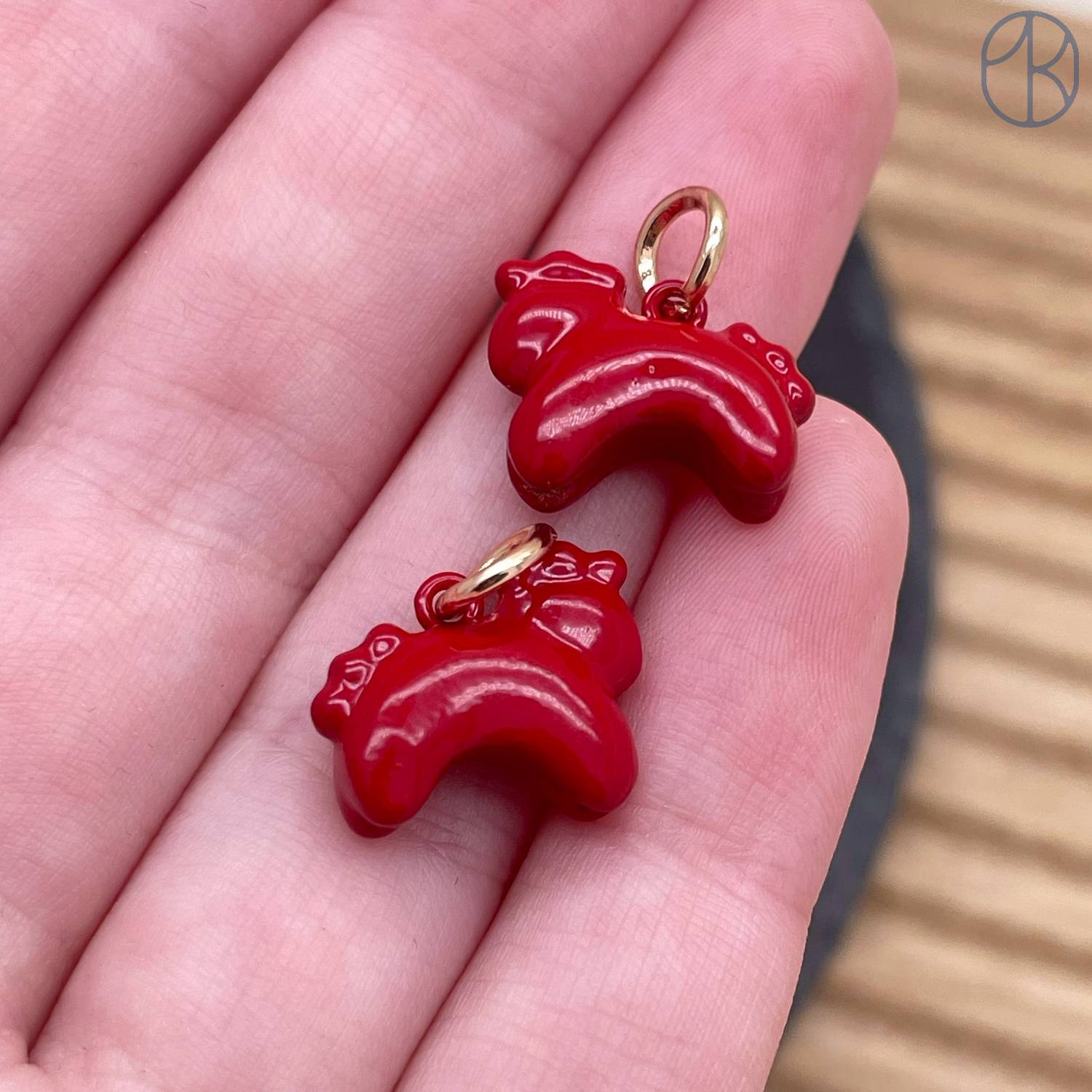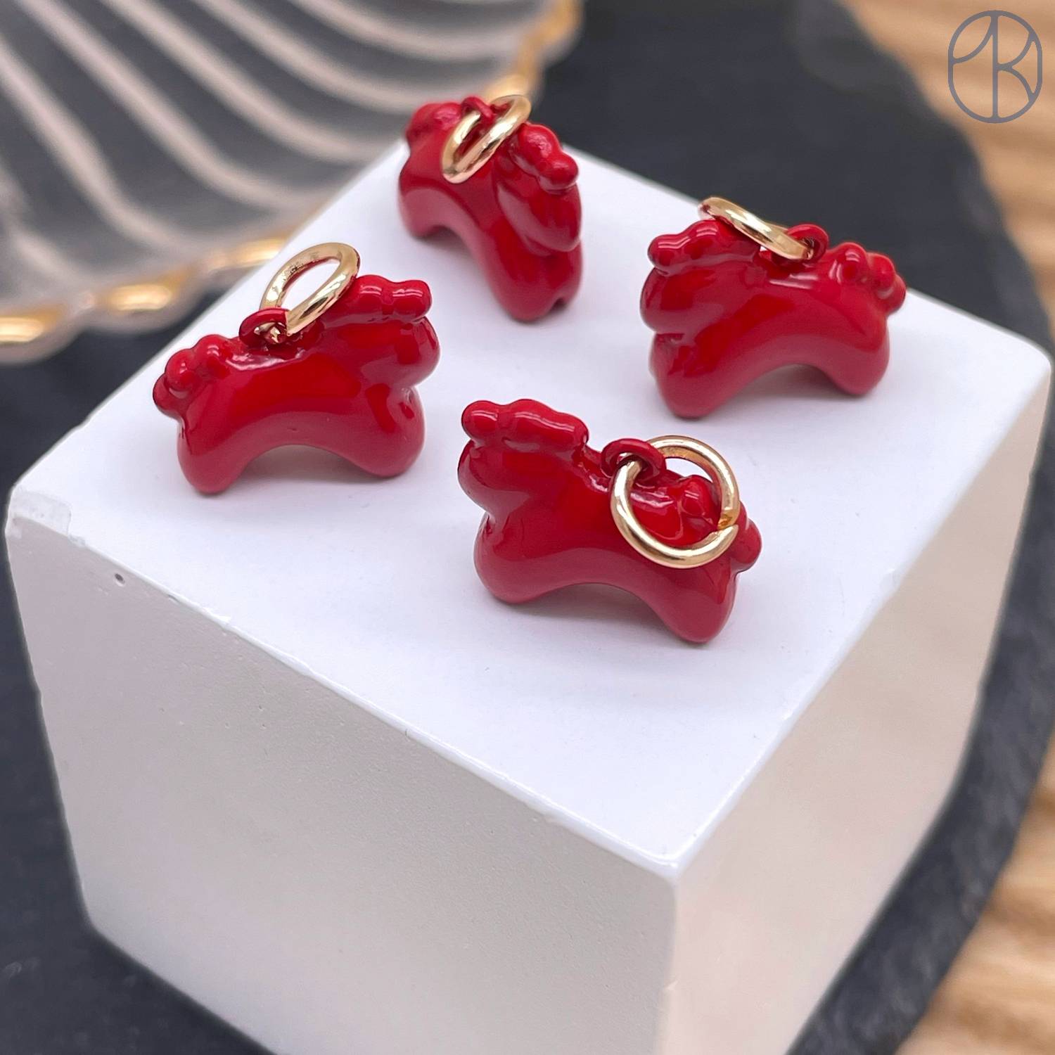 Подвеска лошадь красная эмаль, цвет золото 12 мм