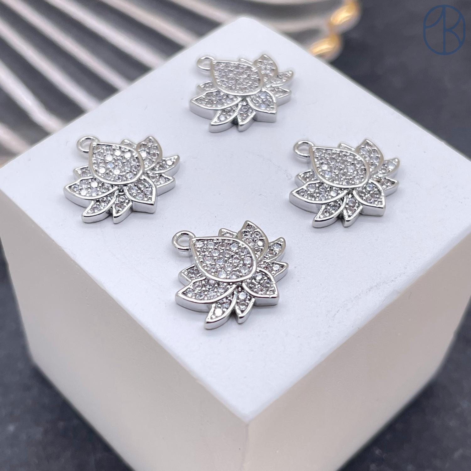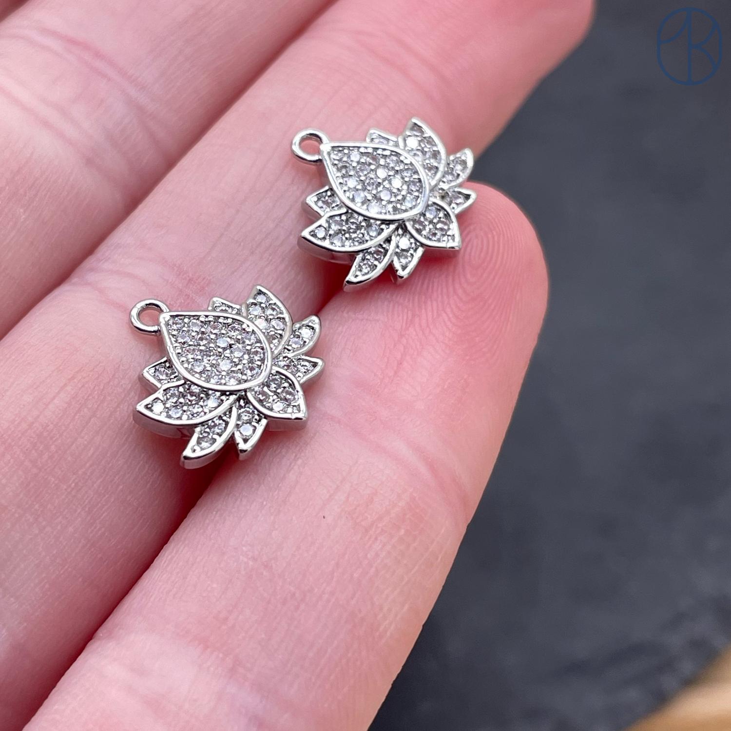 Подвеска лотос цирконы, цвет серебро, 10х12 мм