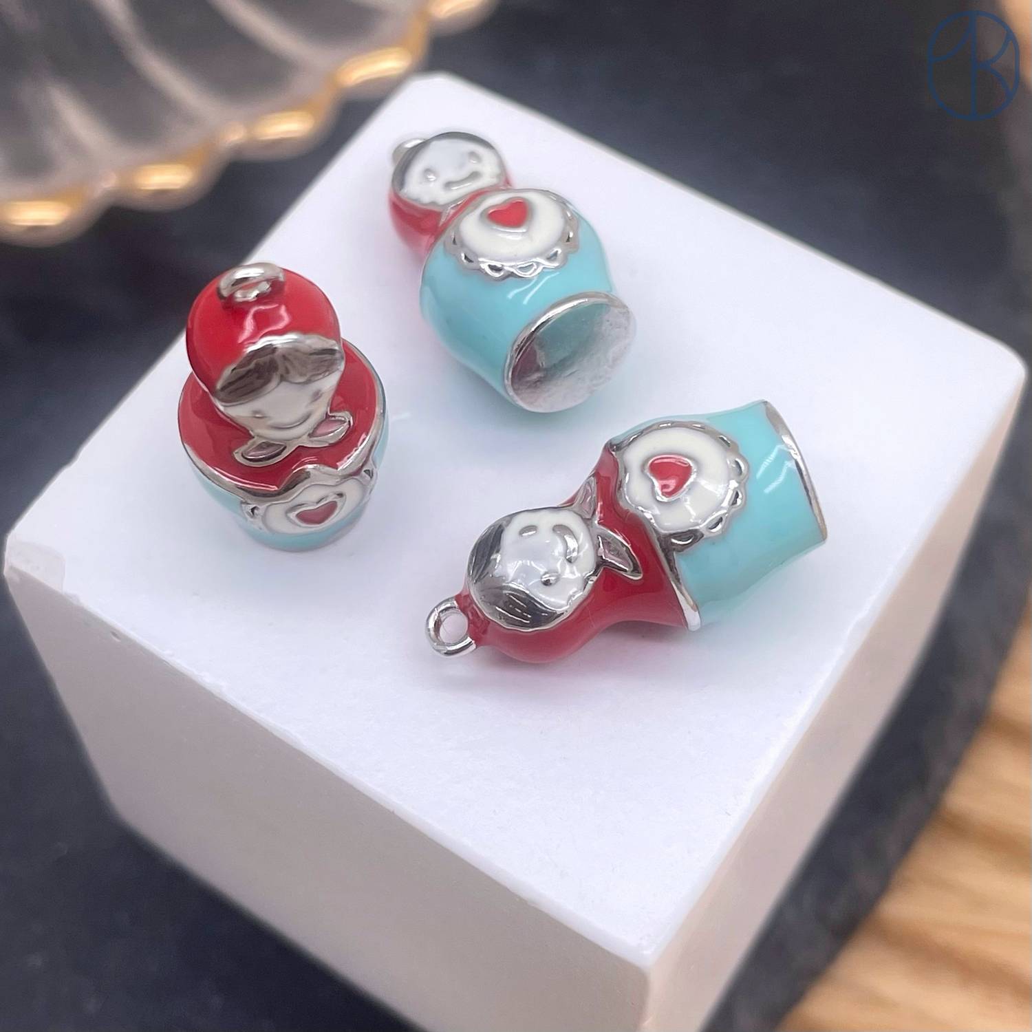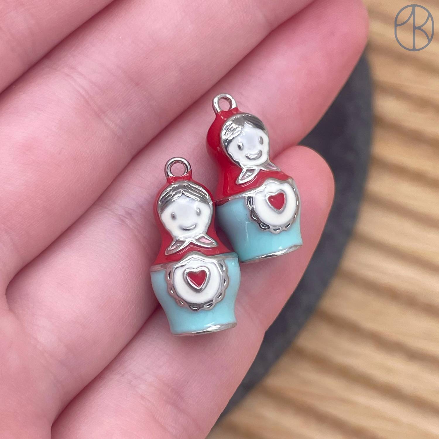 Подвеска матрешка эмаль №1, цвет серебро 20 мм