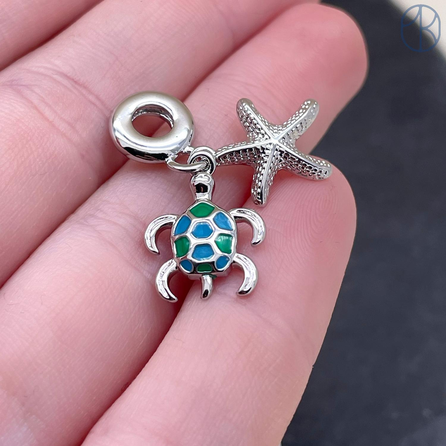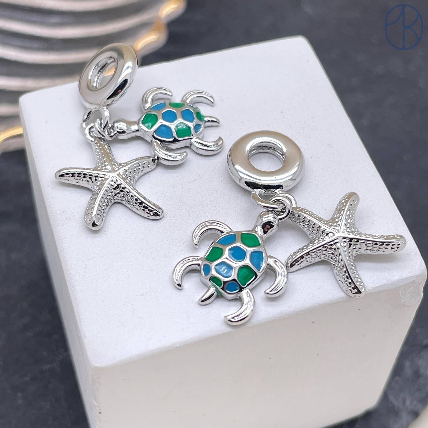 Подвеска морская звезда и черепаха, цвет серебро 16х15 мм