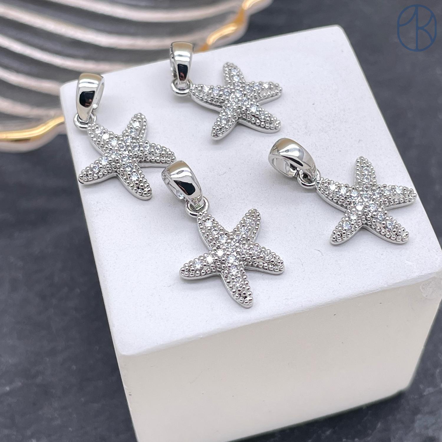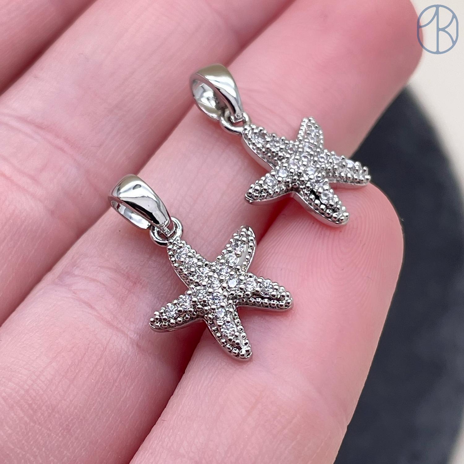 Подвеска морская звезда цирконы, цвет серебро 15х11 мм