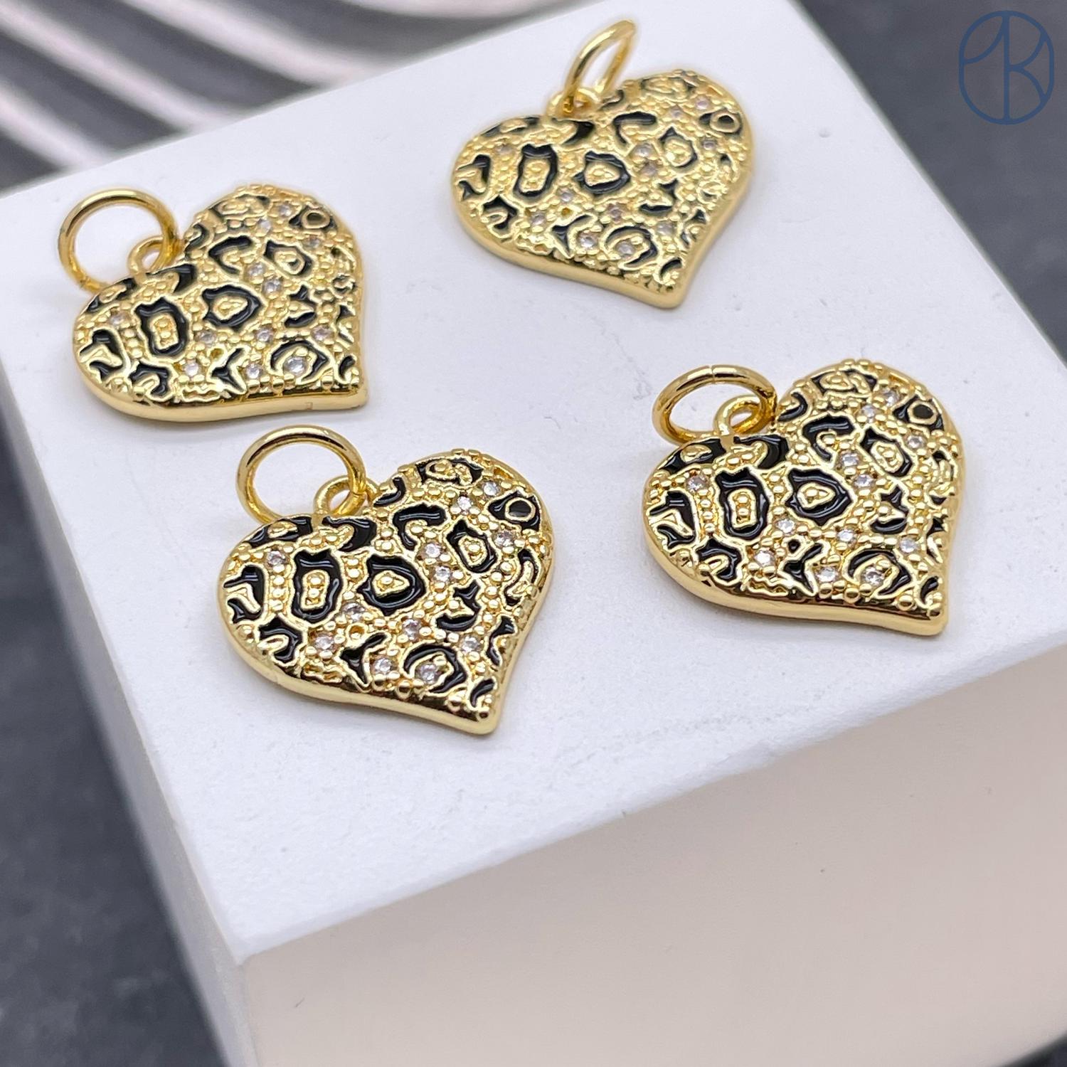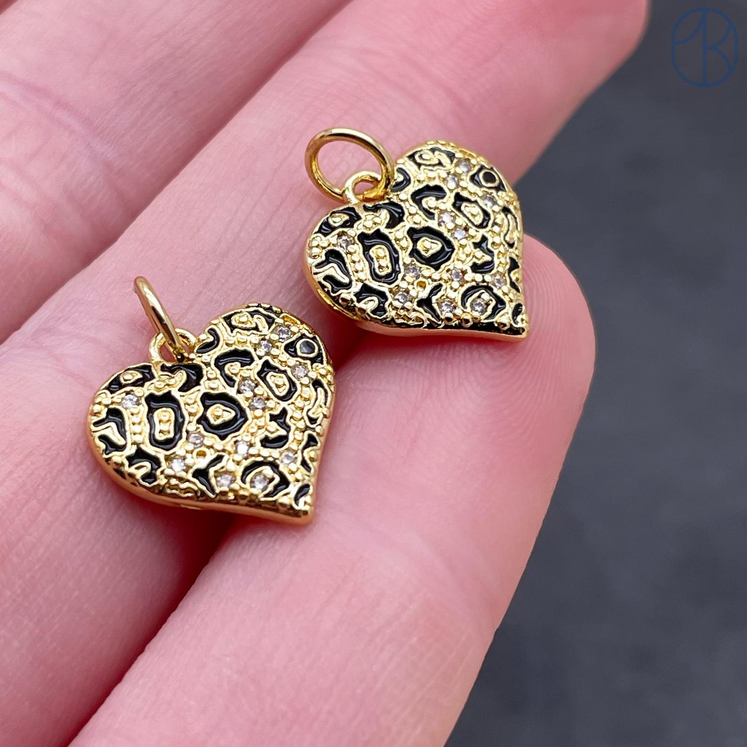 Подвеска сердце леопард, цвет золото,12,5х13 мм