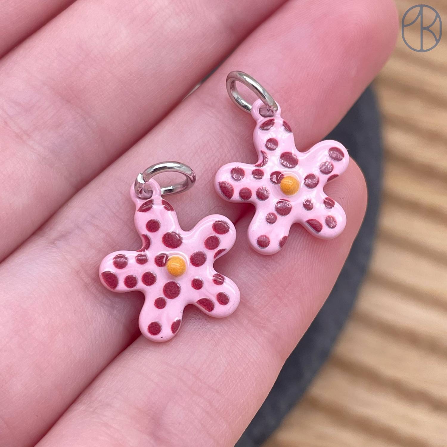 Подвеска цветок розовая эмаль, цвет серебро 13 мм
