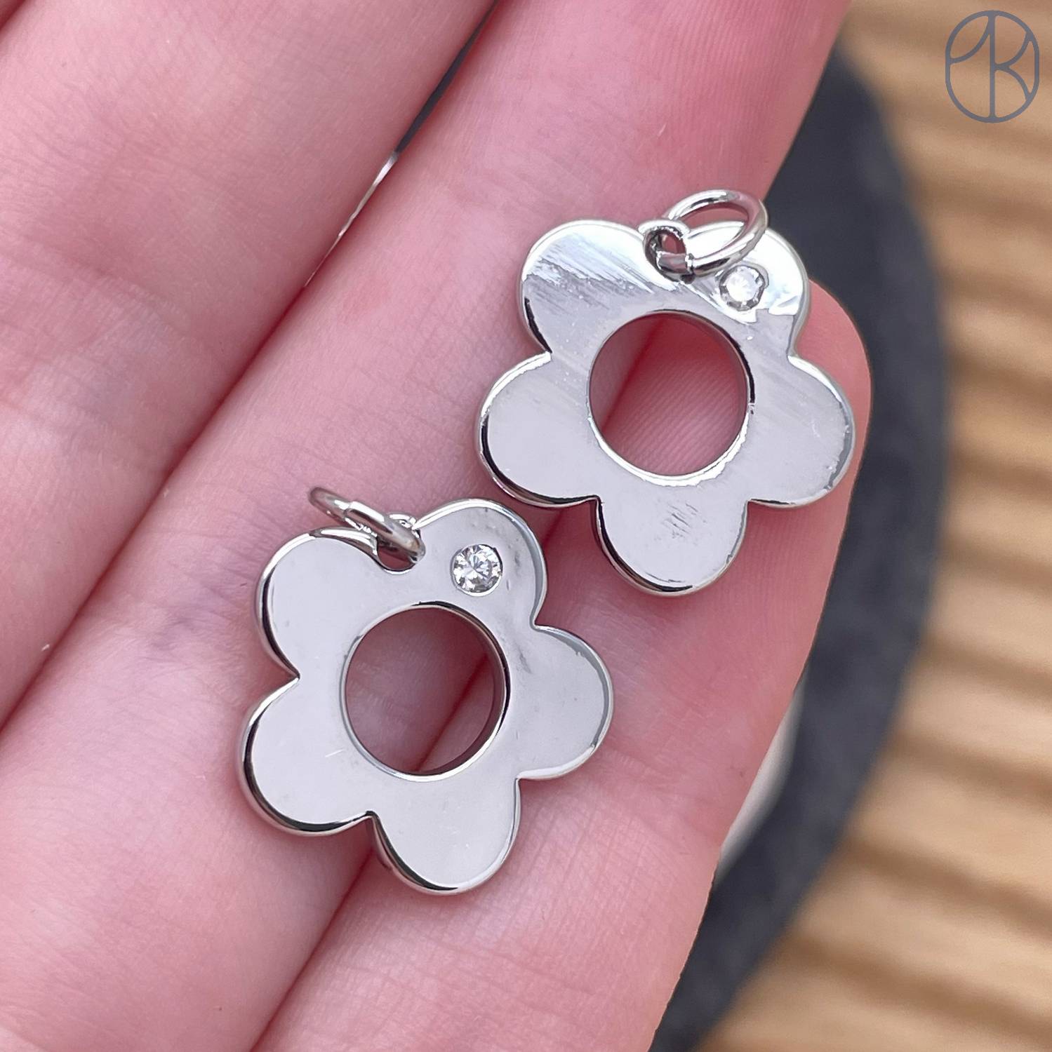 Подвеска цветок циркон, цвет серебро 15 мм
