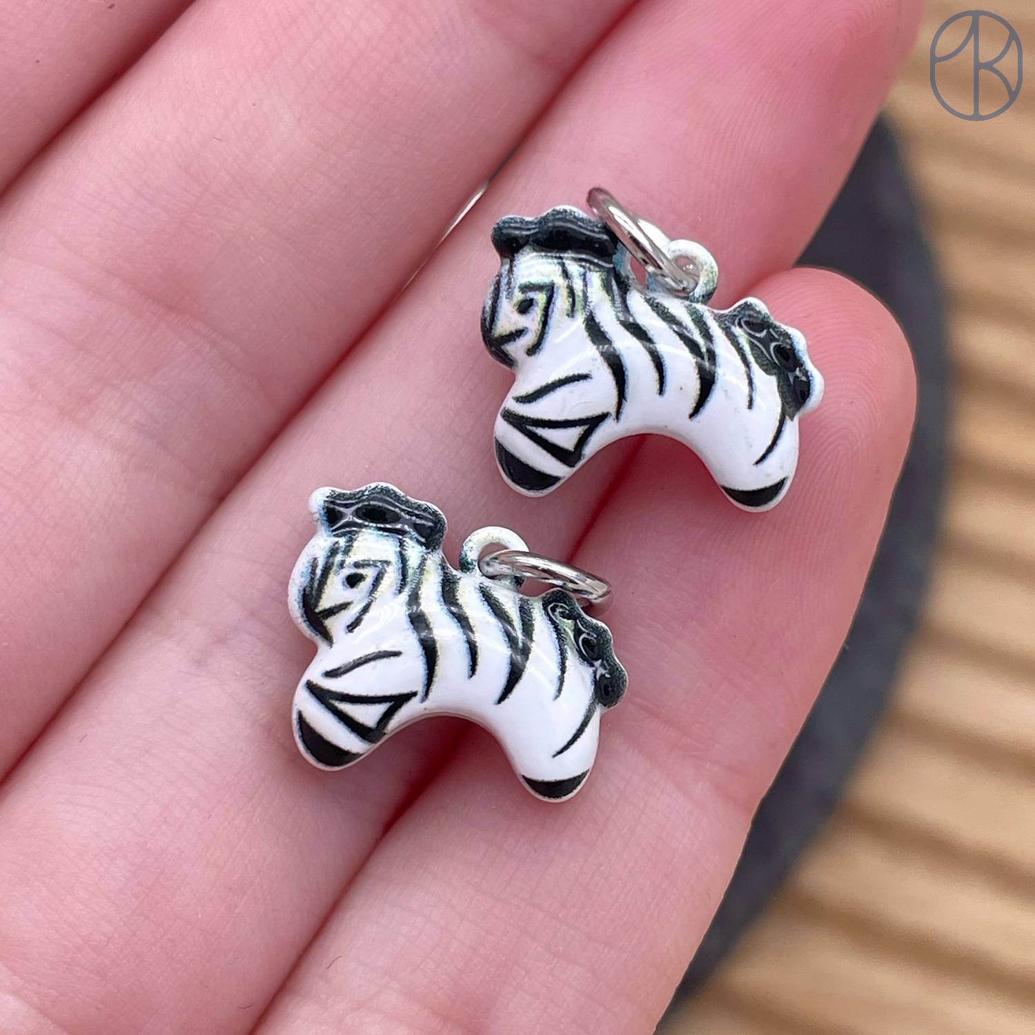 Подвеска зебра эмаль, цвет серебро 12 мм