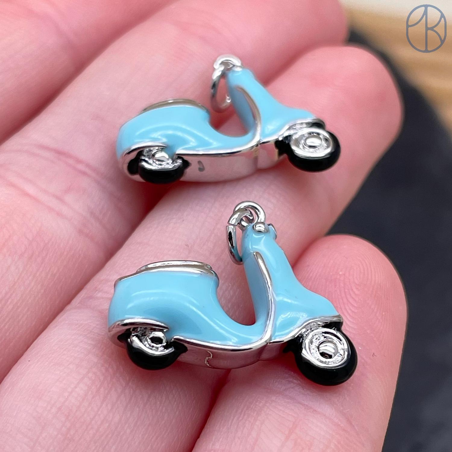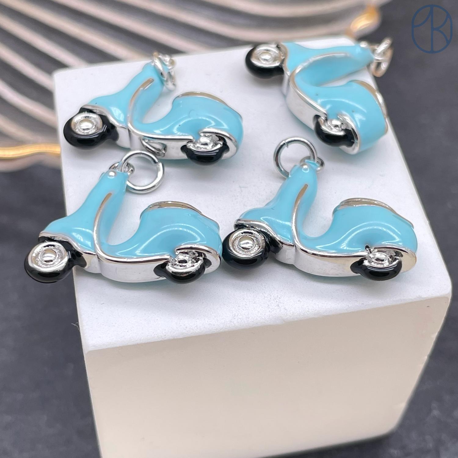 Подвеска мопед голубая эмаль, цвет серебро 16,5х21 мм