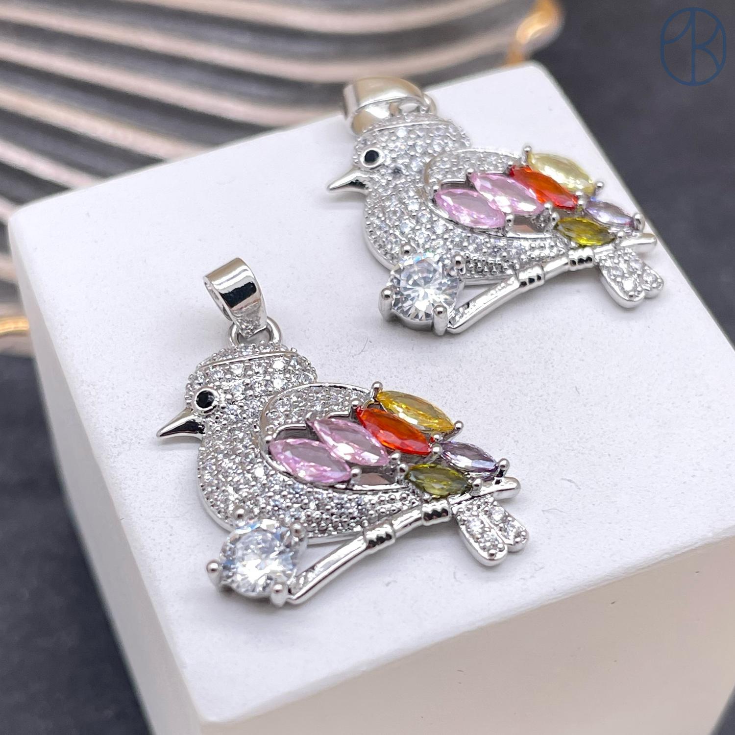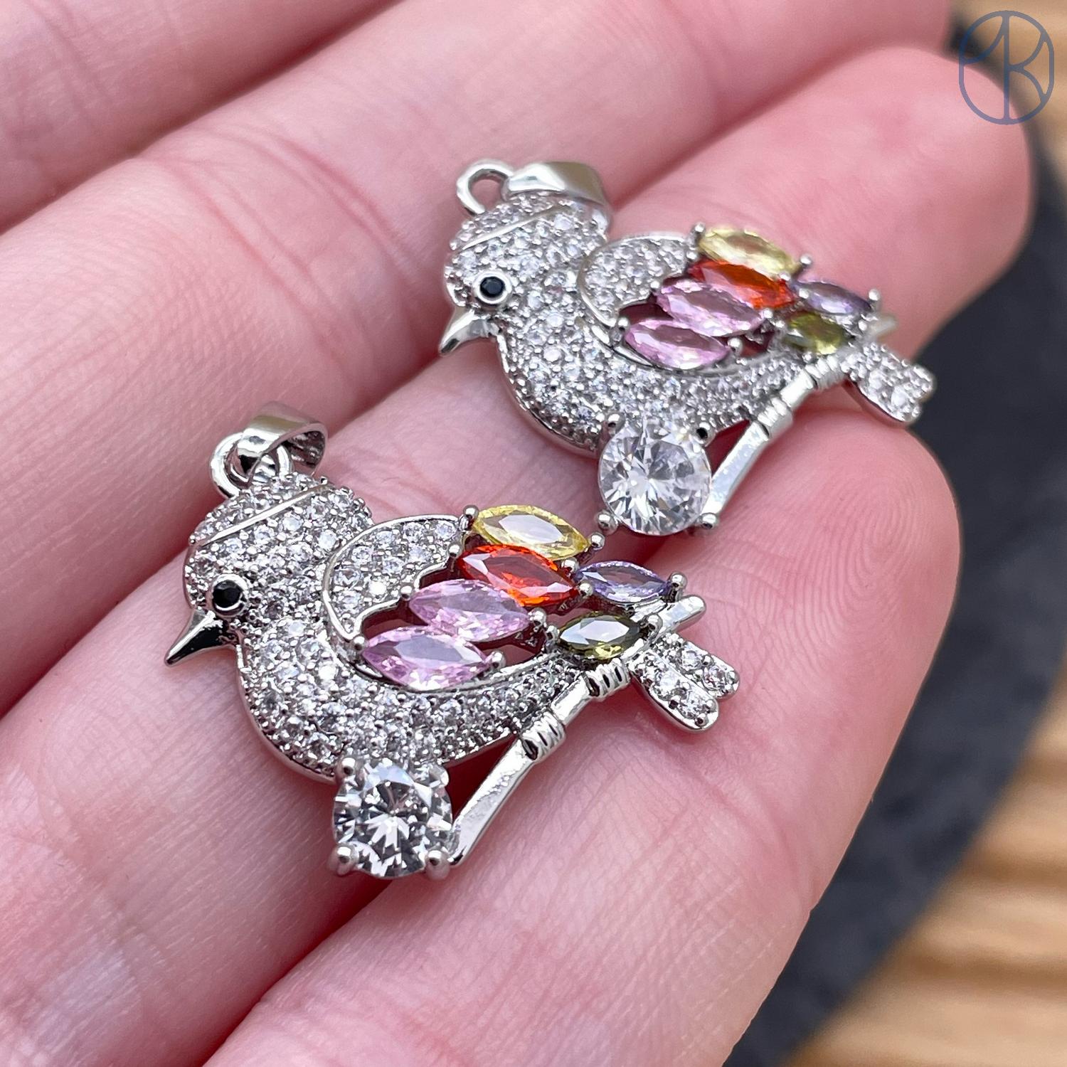 Подвеска птица цирконы микс, цвет серебро 20 мм