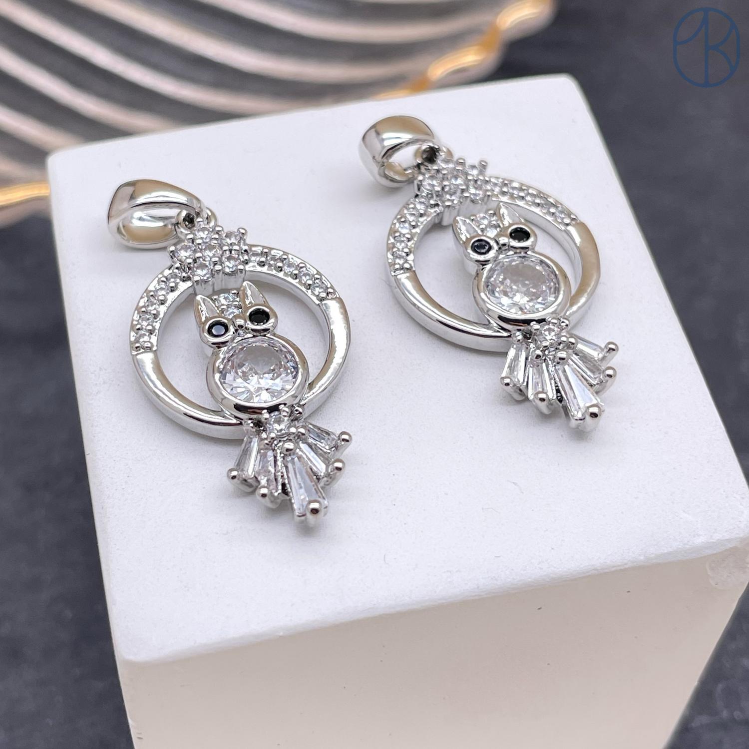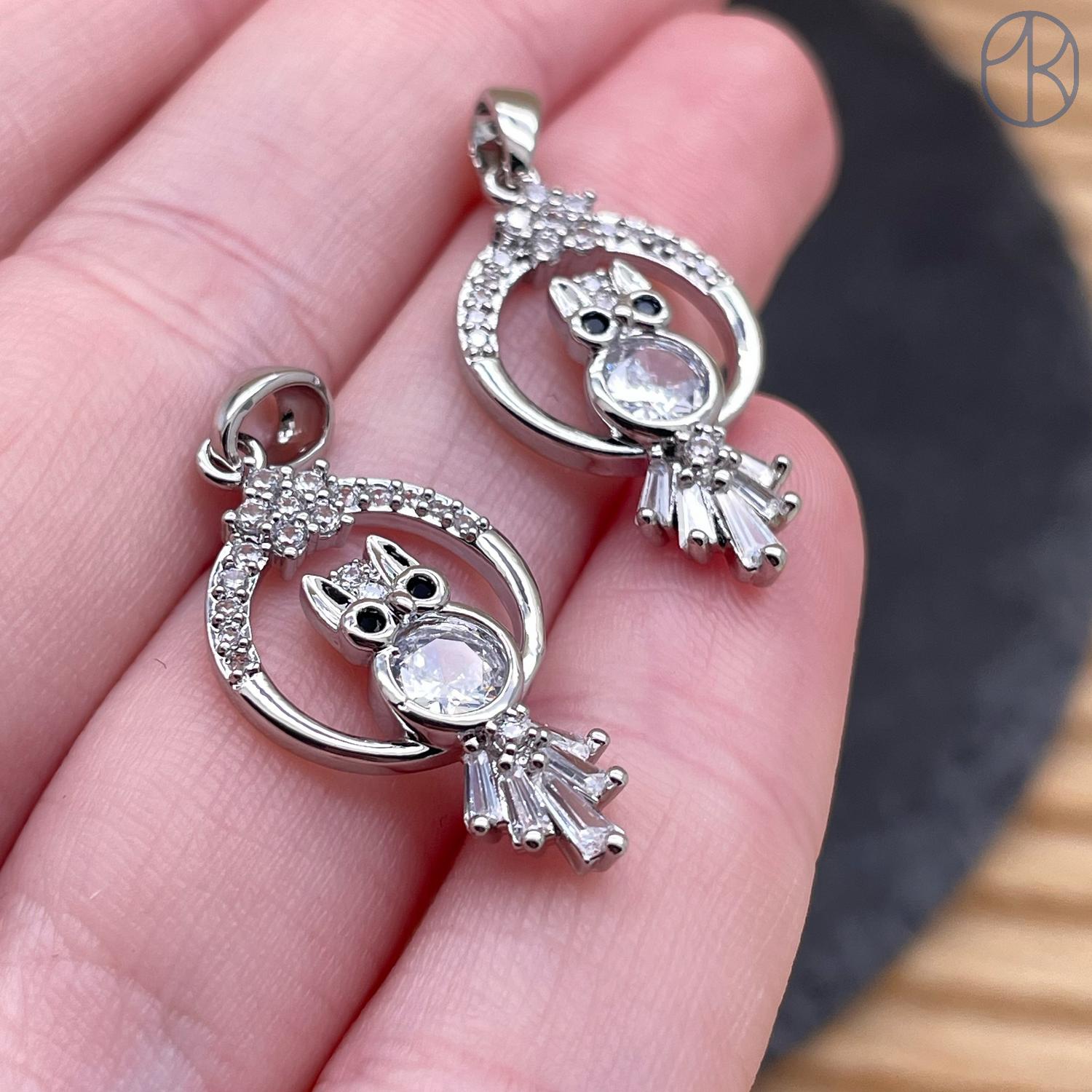Подвеска сова цирконы, цвет серебро 24х14 мм