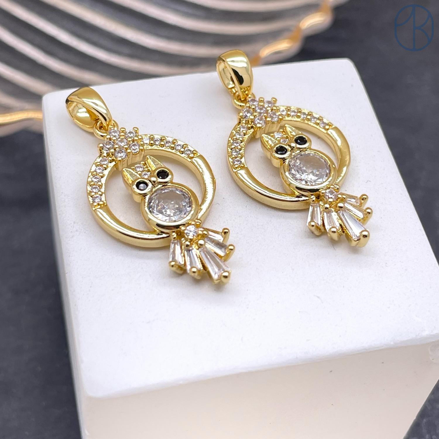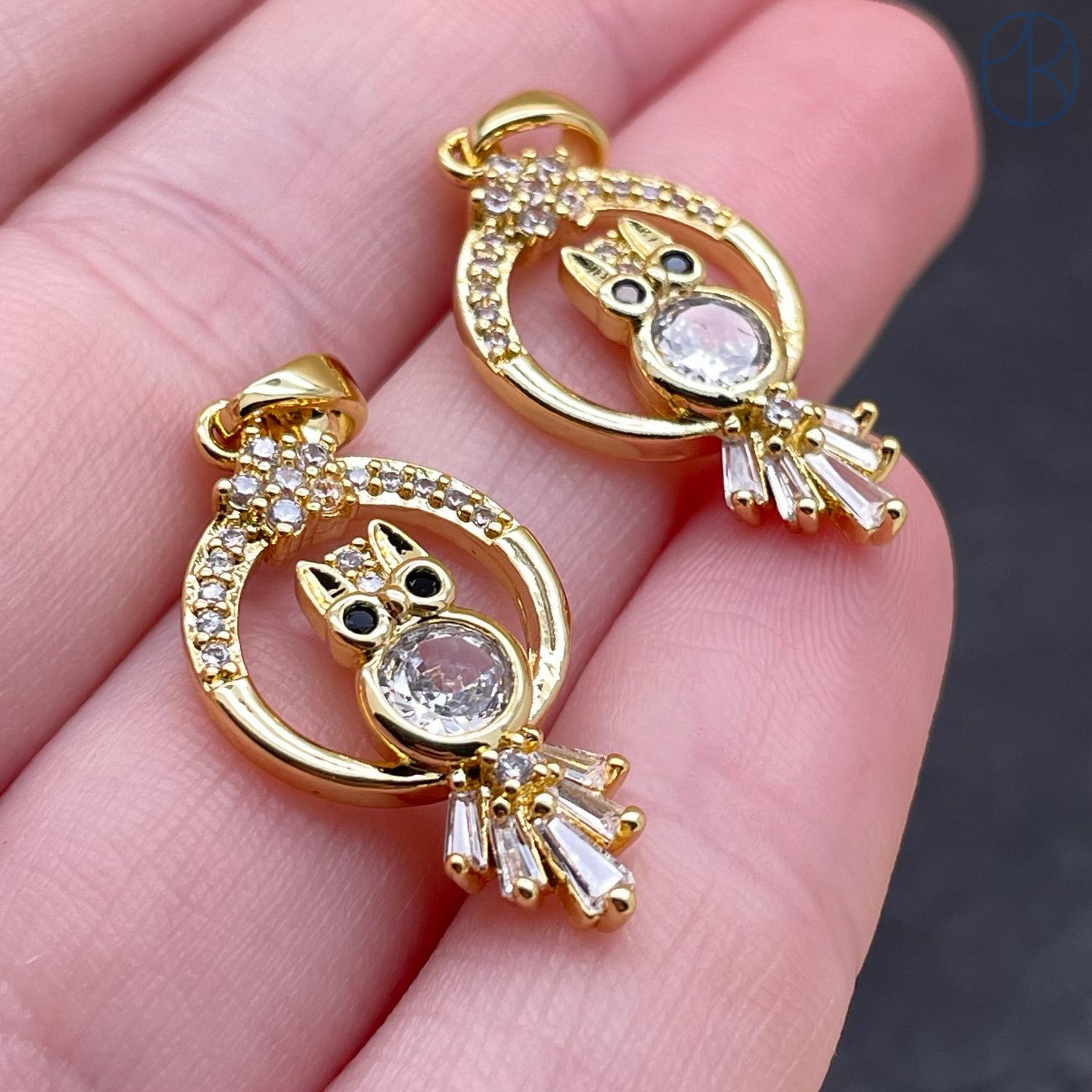 Подвеска сова цирконы, цвет золото 24х14 мм