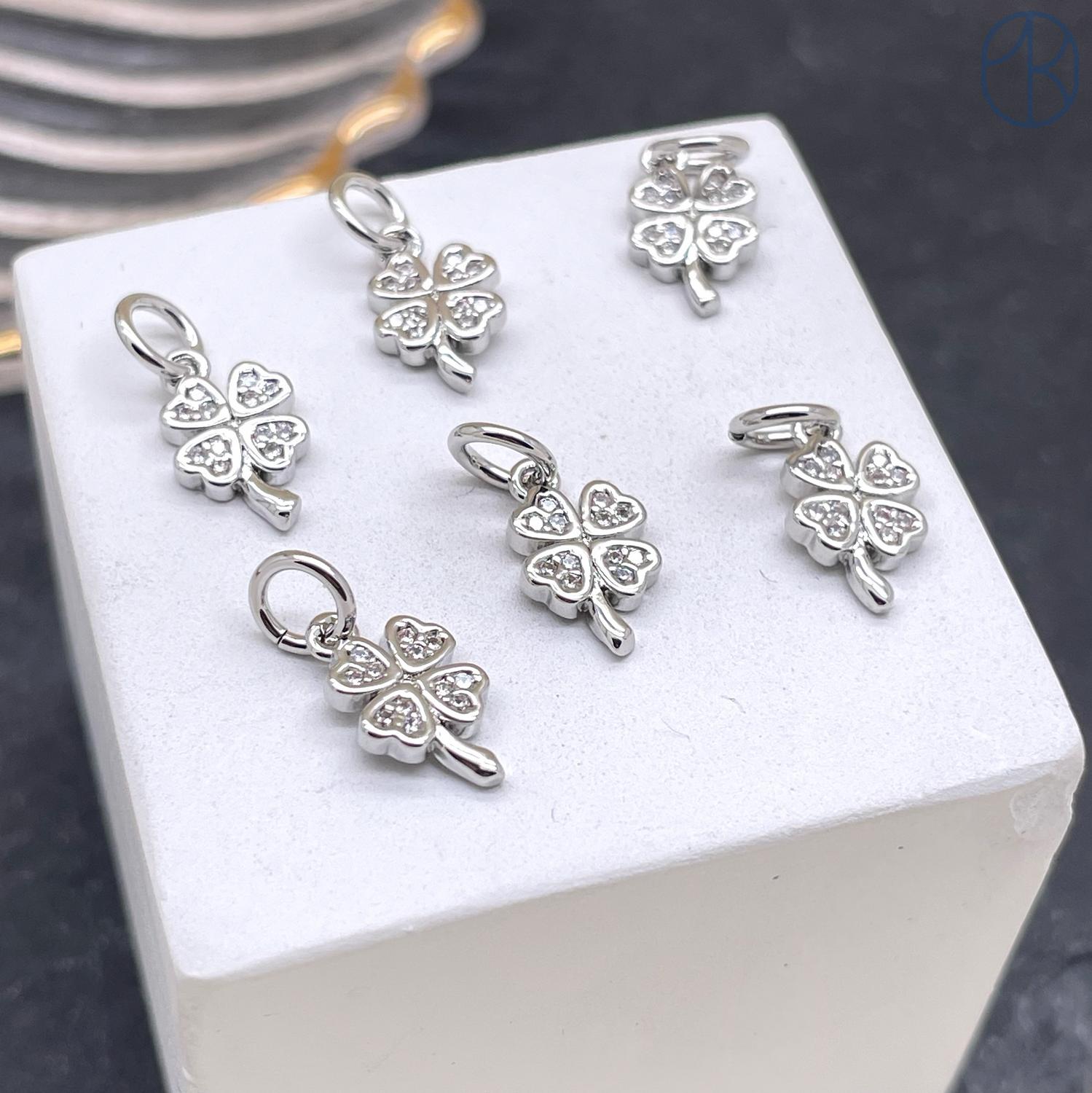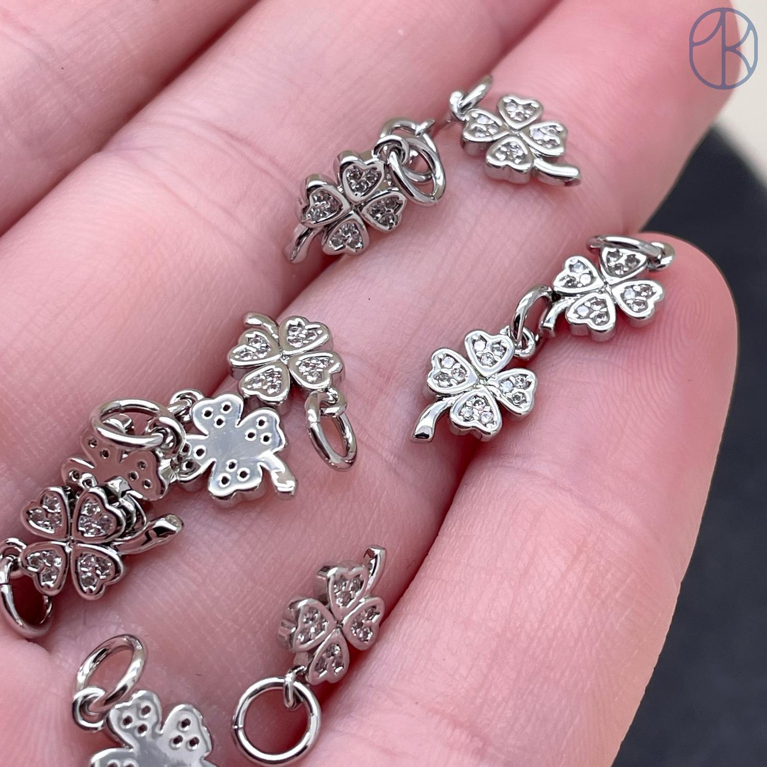 Подвеска клевер цирконы, Цвет серебро, 8 мм