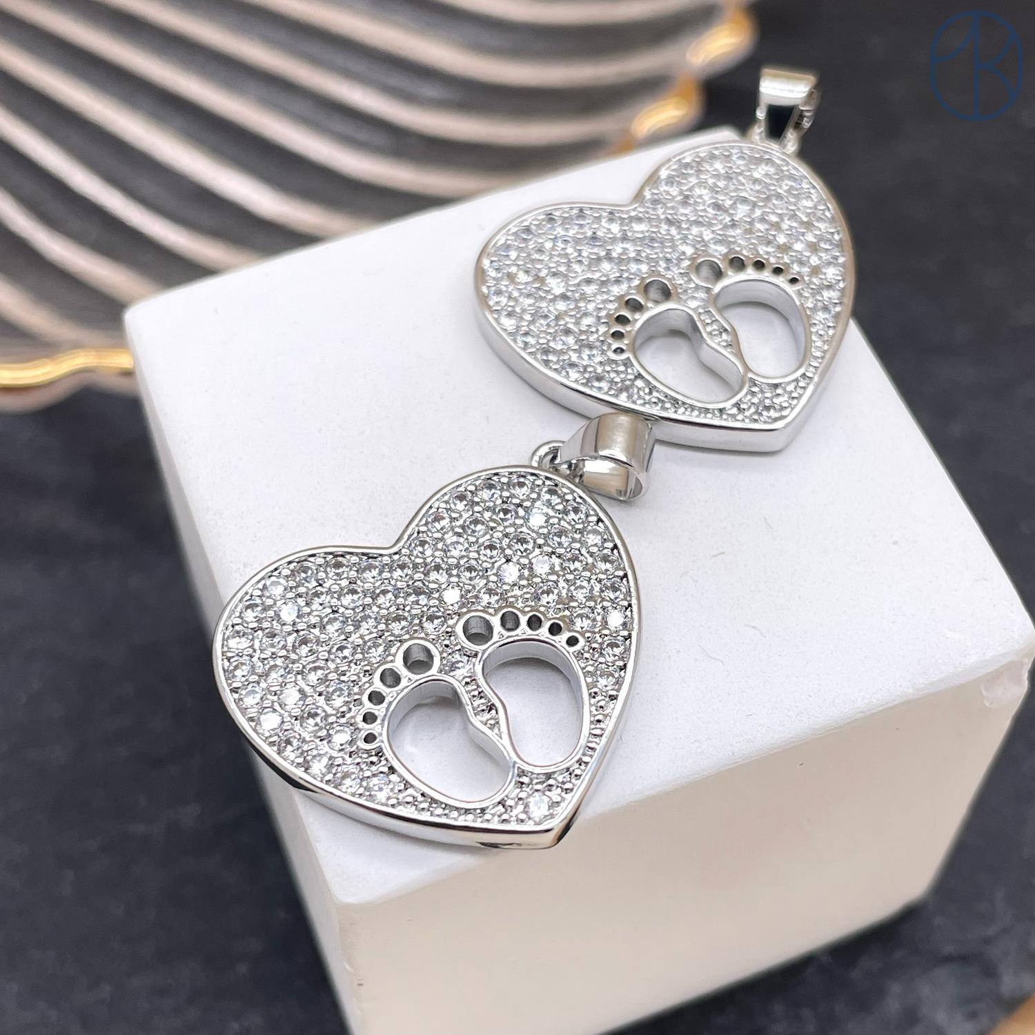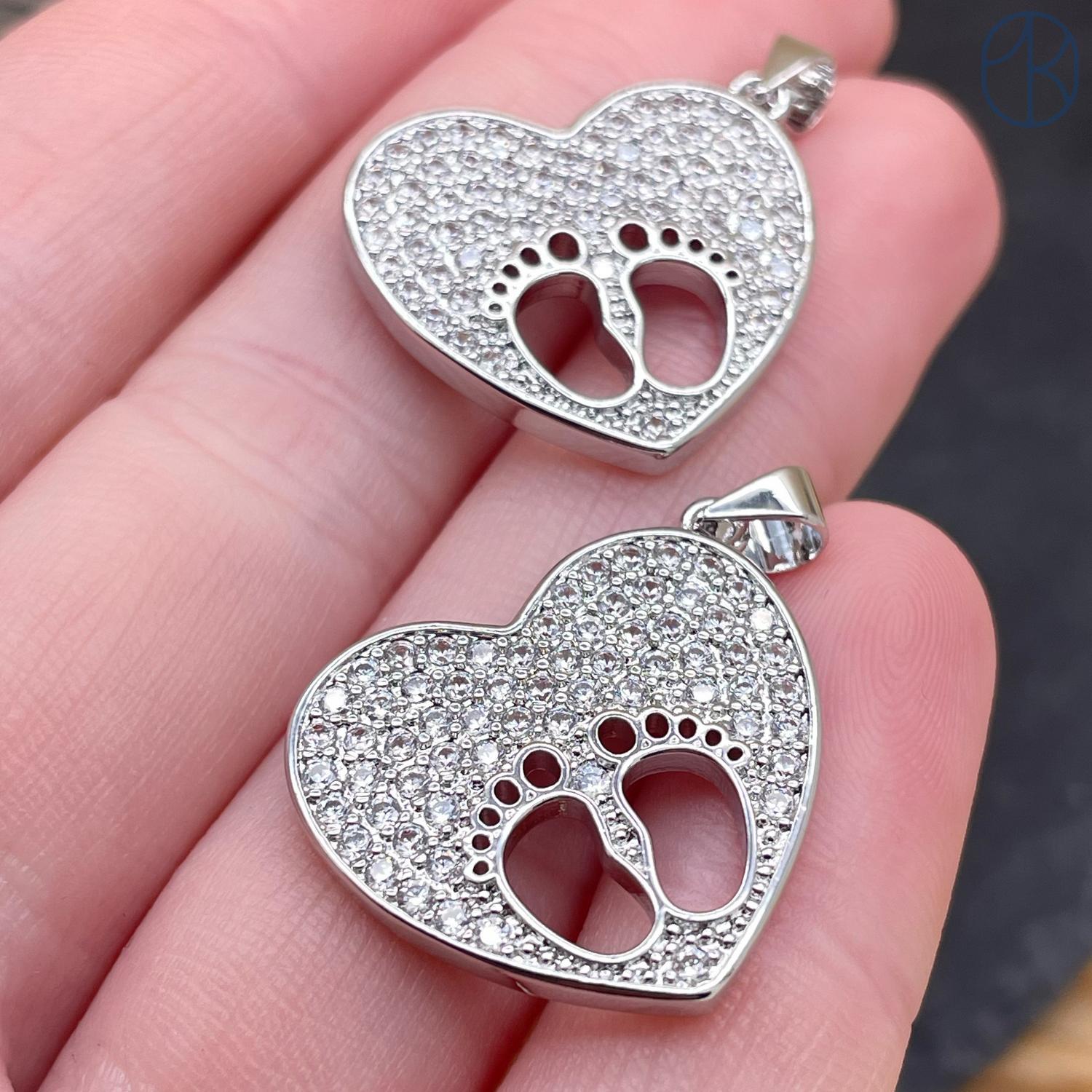 Подвеска сердце детские ножки цирконы, цвет серебро 22х27 мм