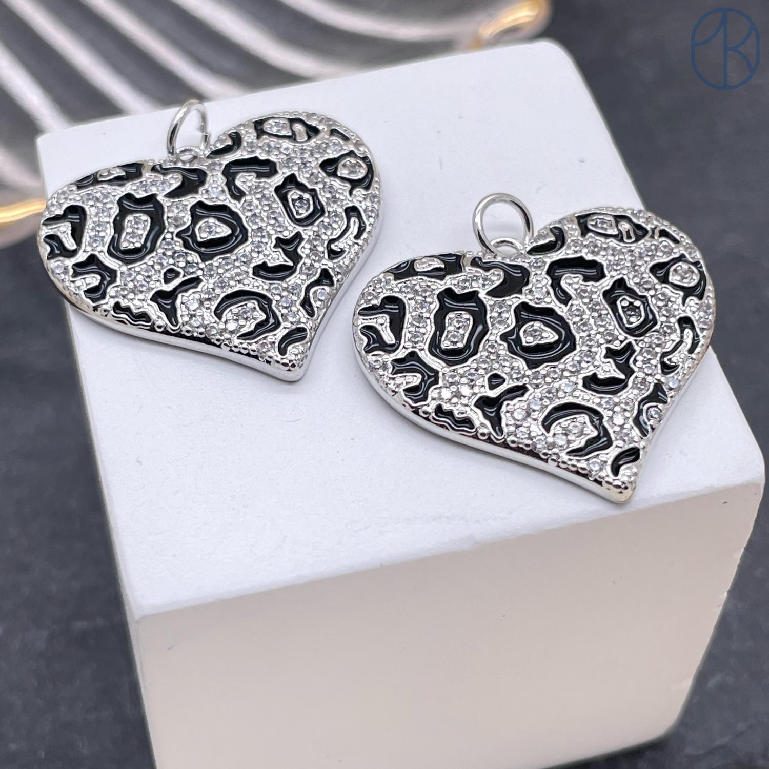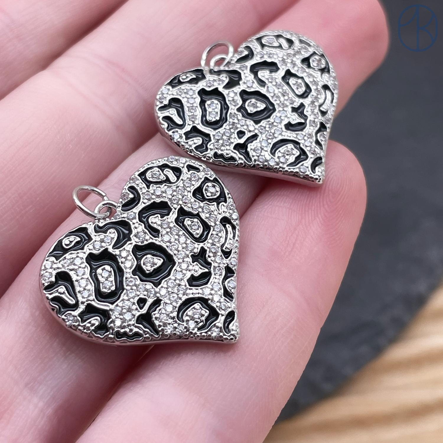 Подвеска сердце леопард, цвет серебро, 21х24 мм