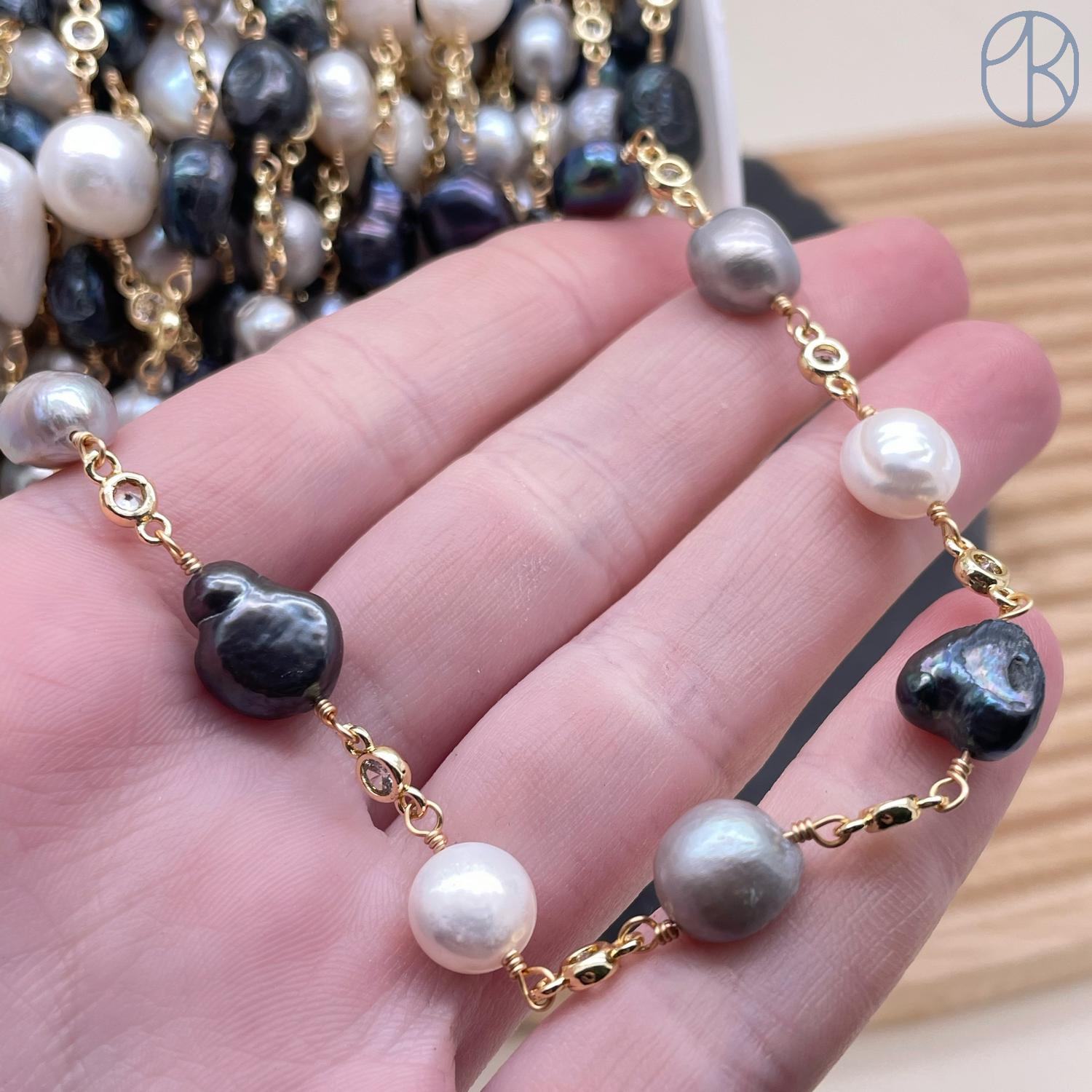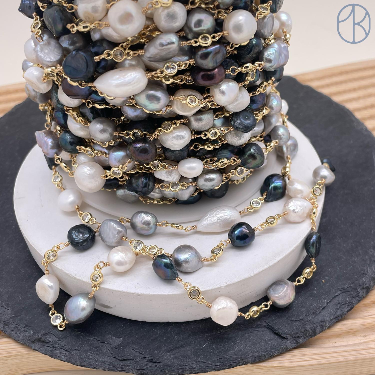 Цепь №256-1 цвет золото, натуральный жемчуг 8-9 мм