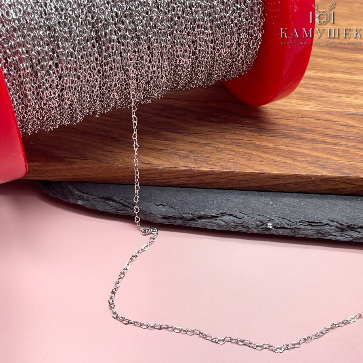 Цепь №127 цвет серебро сердце 1,5х2 мм
