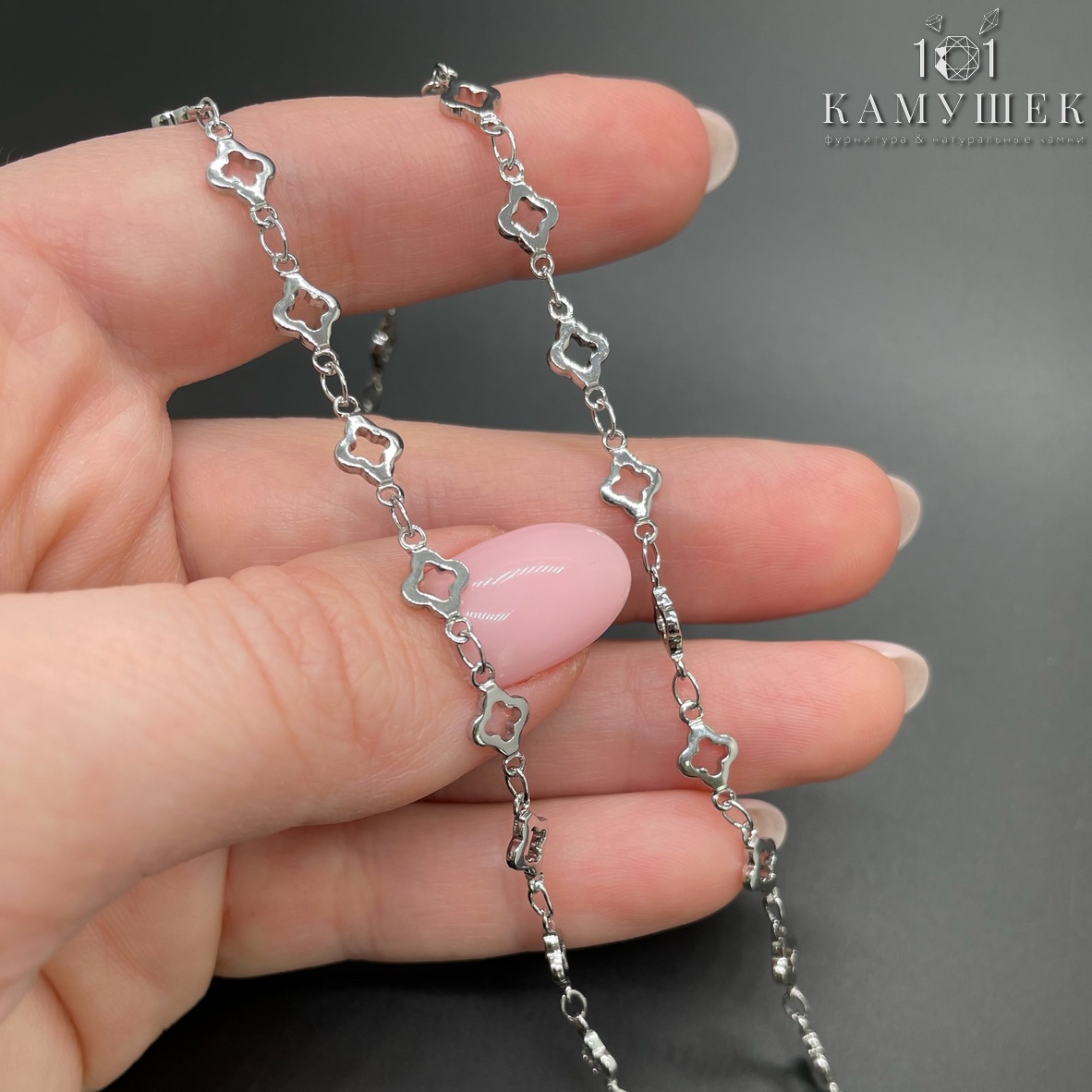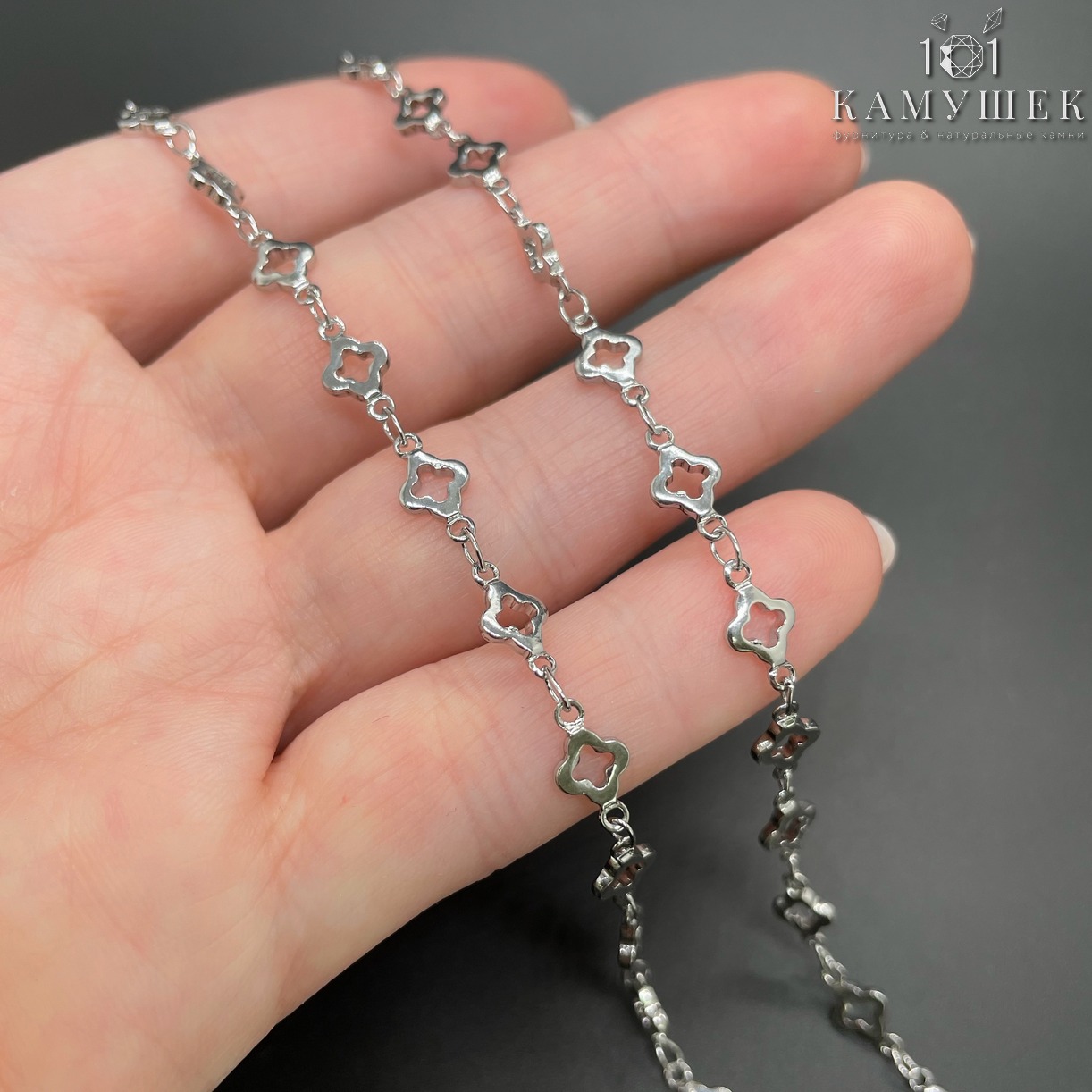 Цепь №112 цвет серебро, клевер 5,5 мм