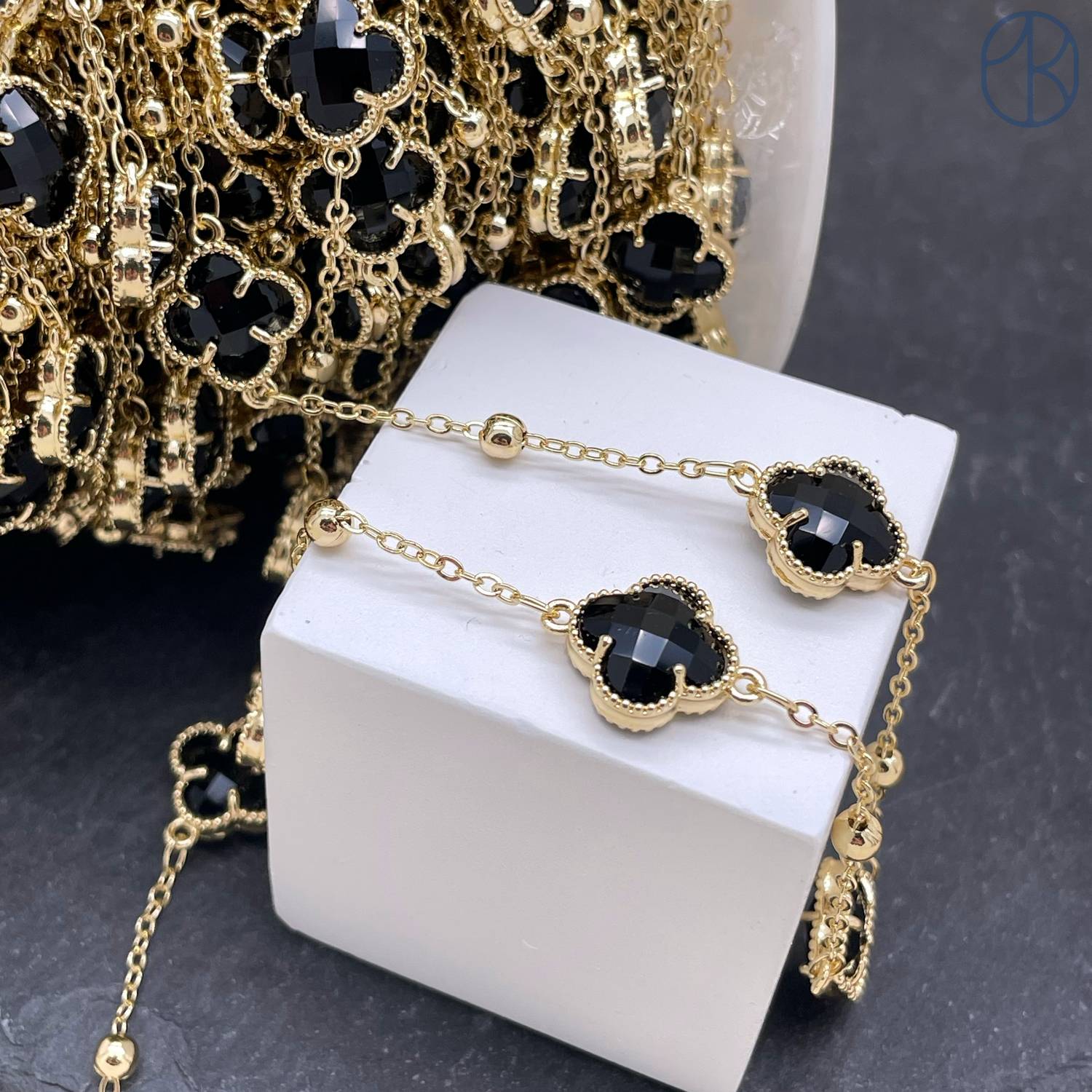 Цепь №310-1 цвет золото клевер черный 12 мм