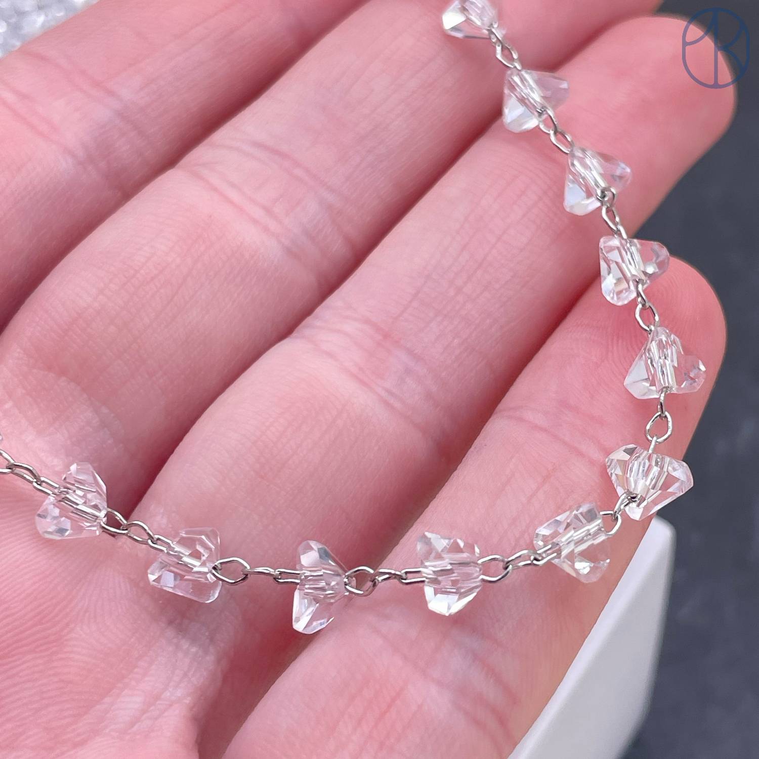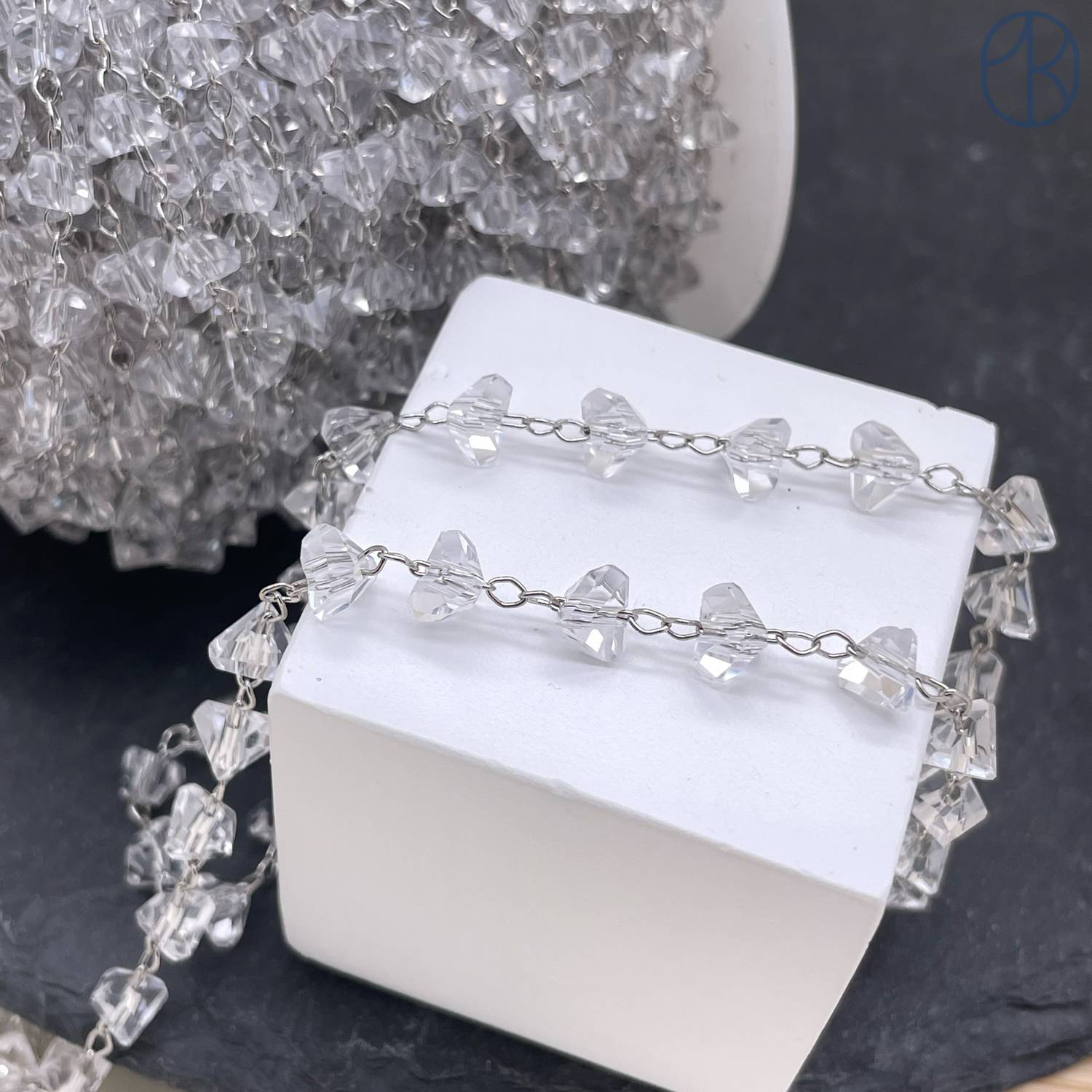 Цепь №312 цвет серебро чешское стекло прозрачное 6 мм