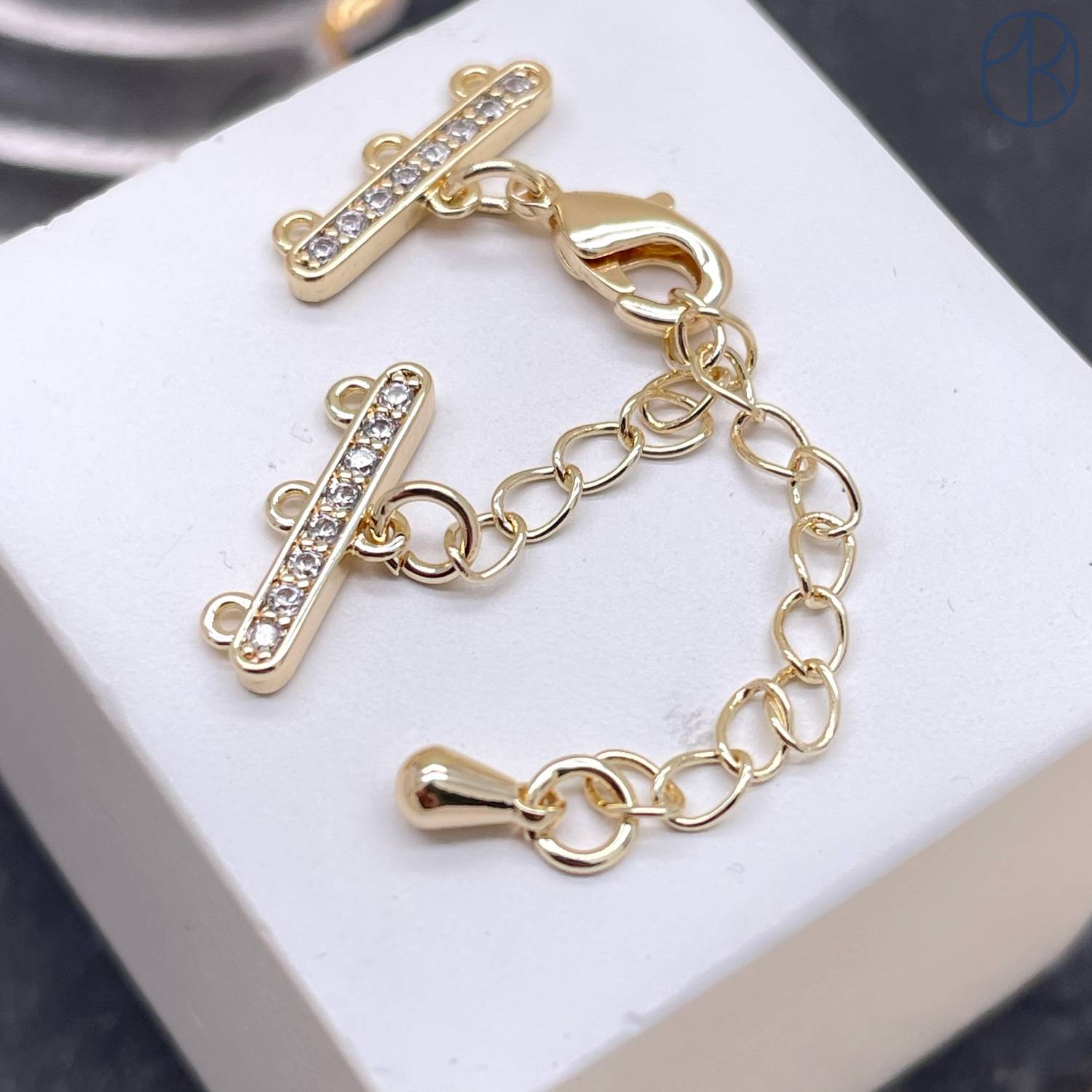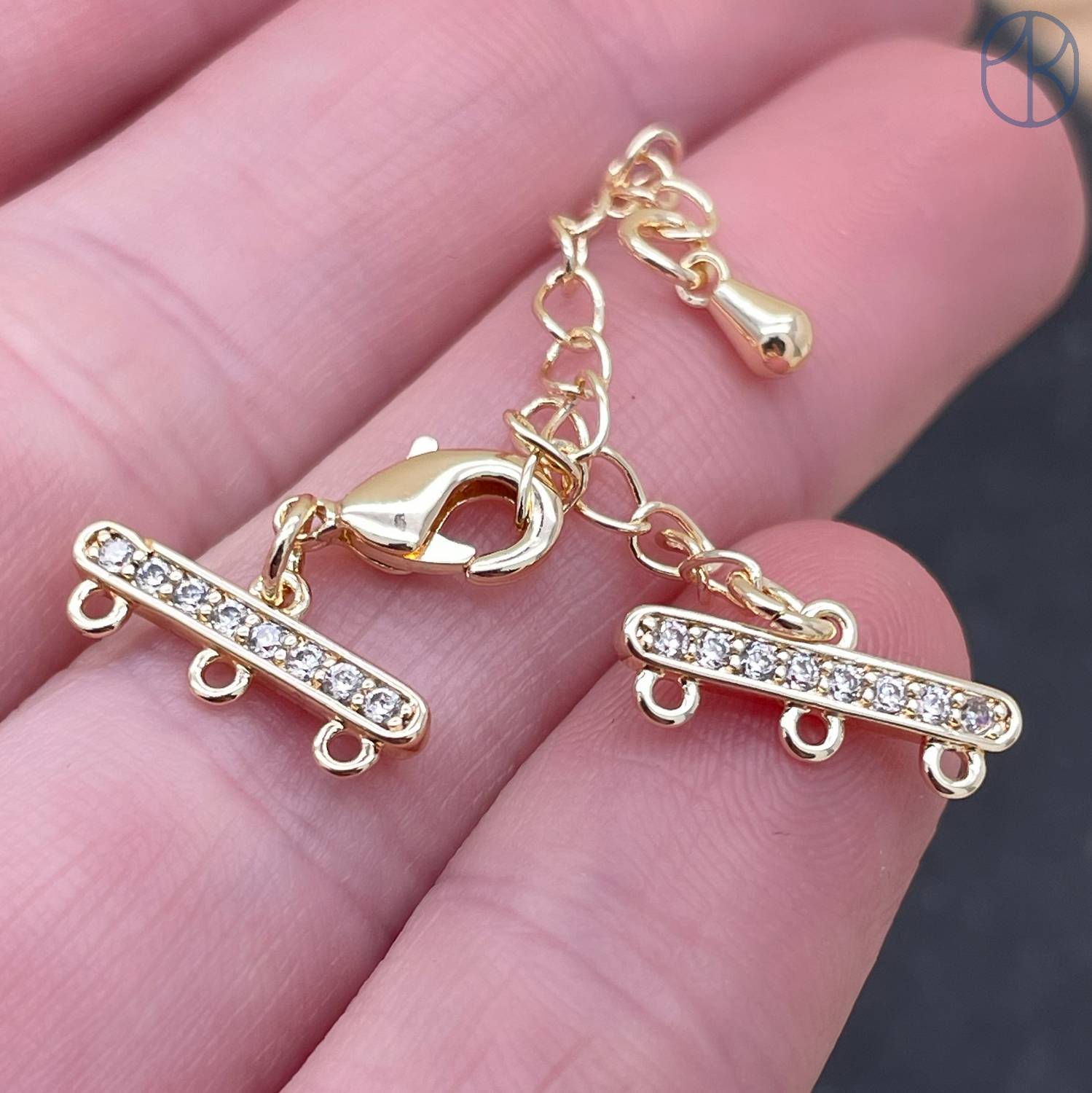 Замок на 3 ряда цирконы, цвет золото 10 мм