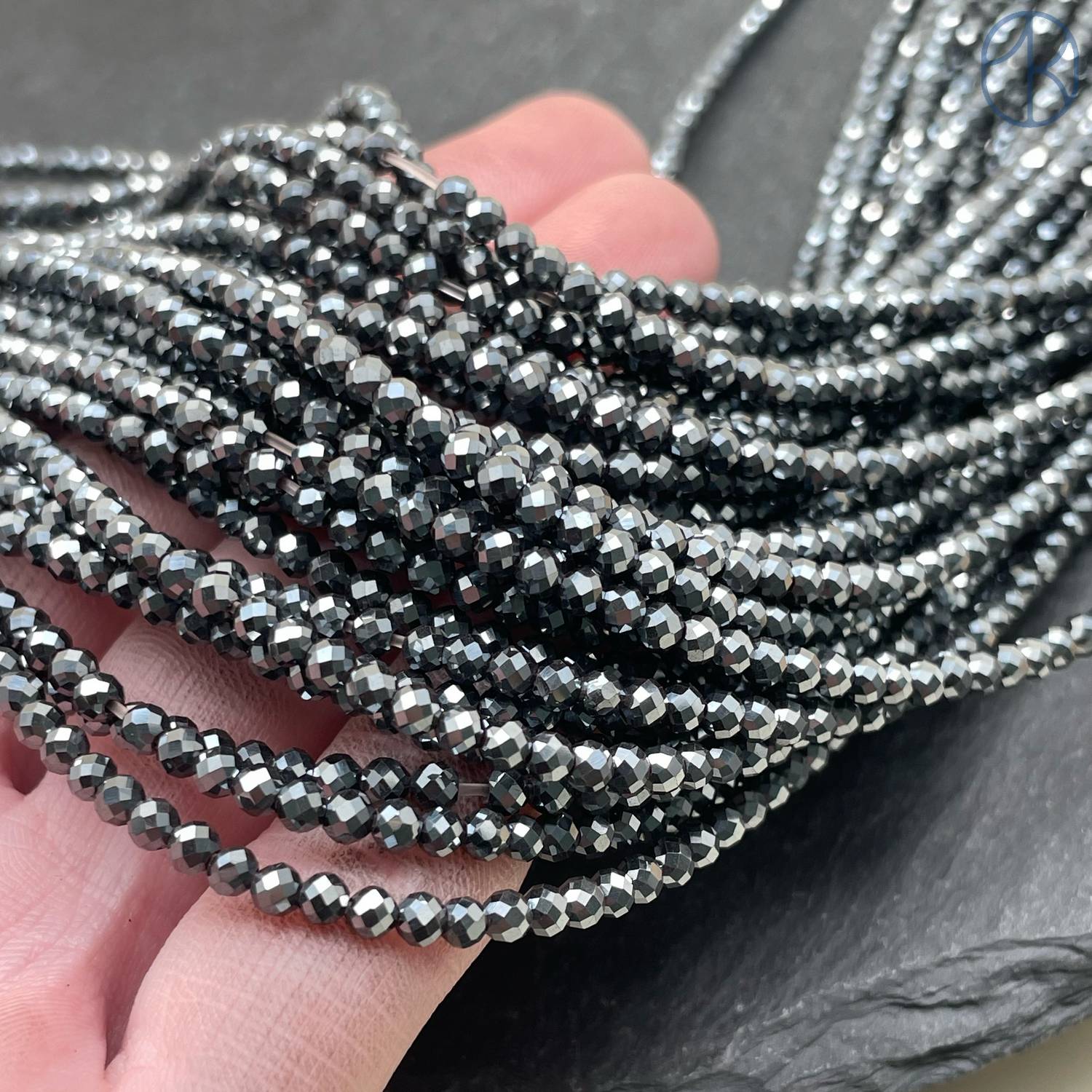 Гематин обладает гладкой, зеркальной поверхностью. Это свойство делает его очень привлекательным, но в то же время делает его более уязвимым к появлению мелких царапин. Во время транспортировки или при обработке бусин небольшие царапины могут появиться на их поверхности. Эти царапины обычно минимальны и едва заметны, но они могут быть видны при определенном освещении или под увеличением.
