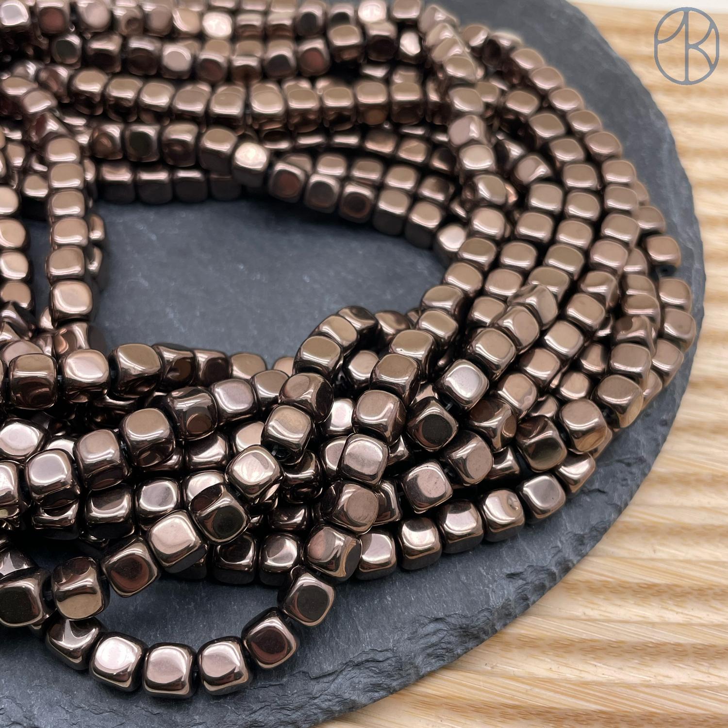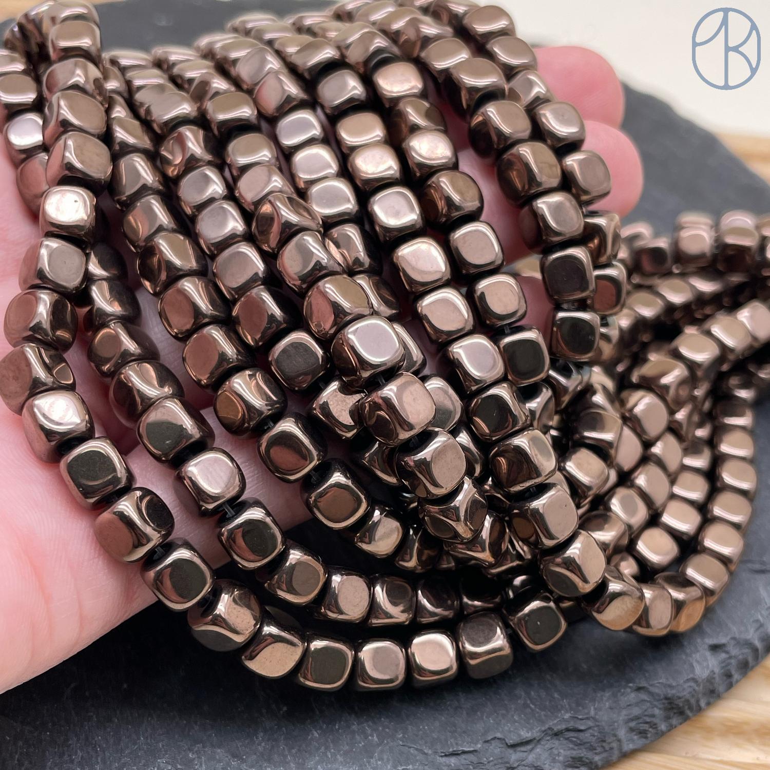 Гематин имитация, цвет коричневый, куб округленные стороны 6 мм