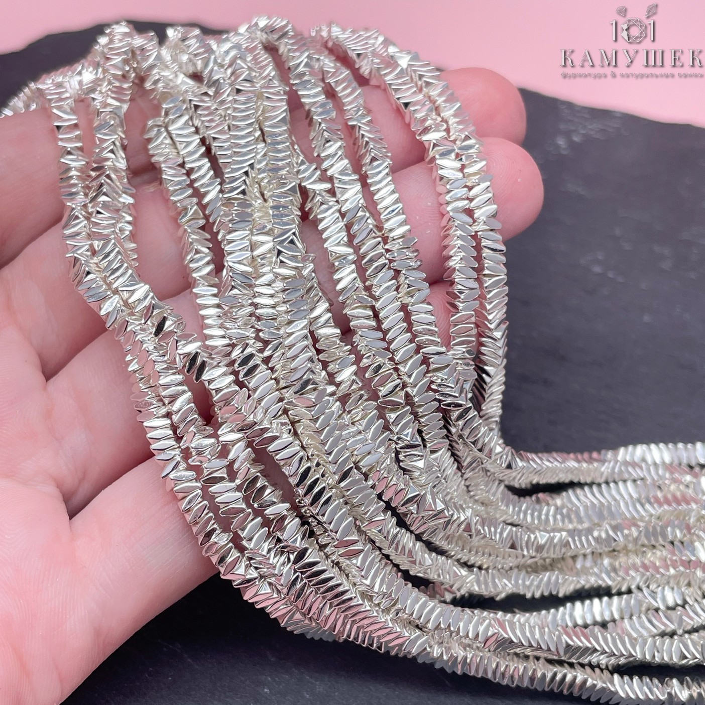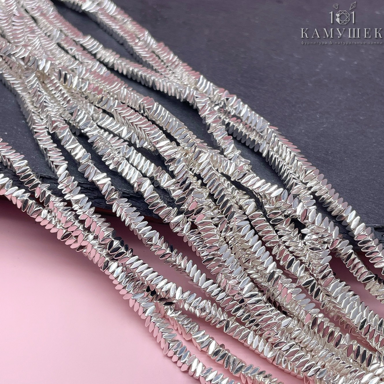 3 мм, Гематин имитация плоский квадрат №1 светлое серебро