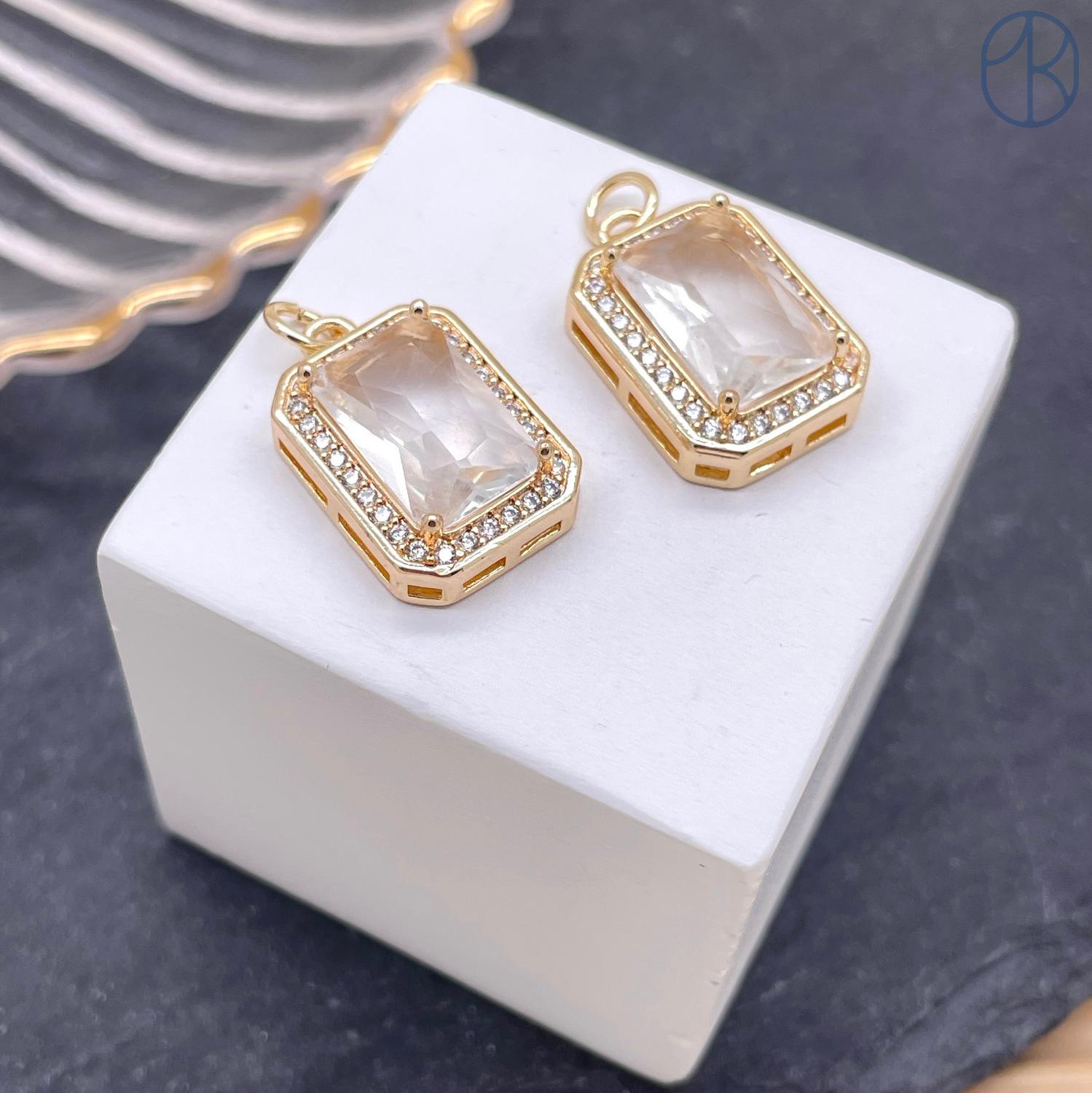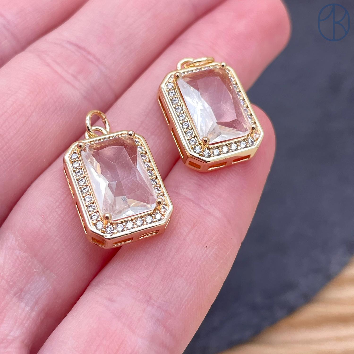 Подвеска прямоугольник циркон, цвет золото 16х12 мм