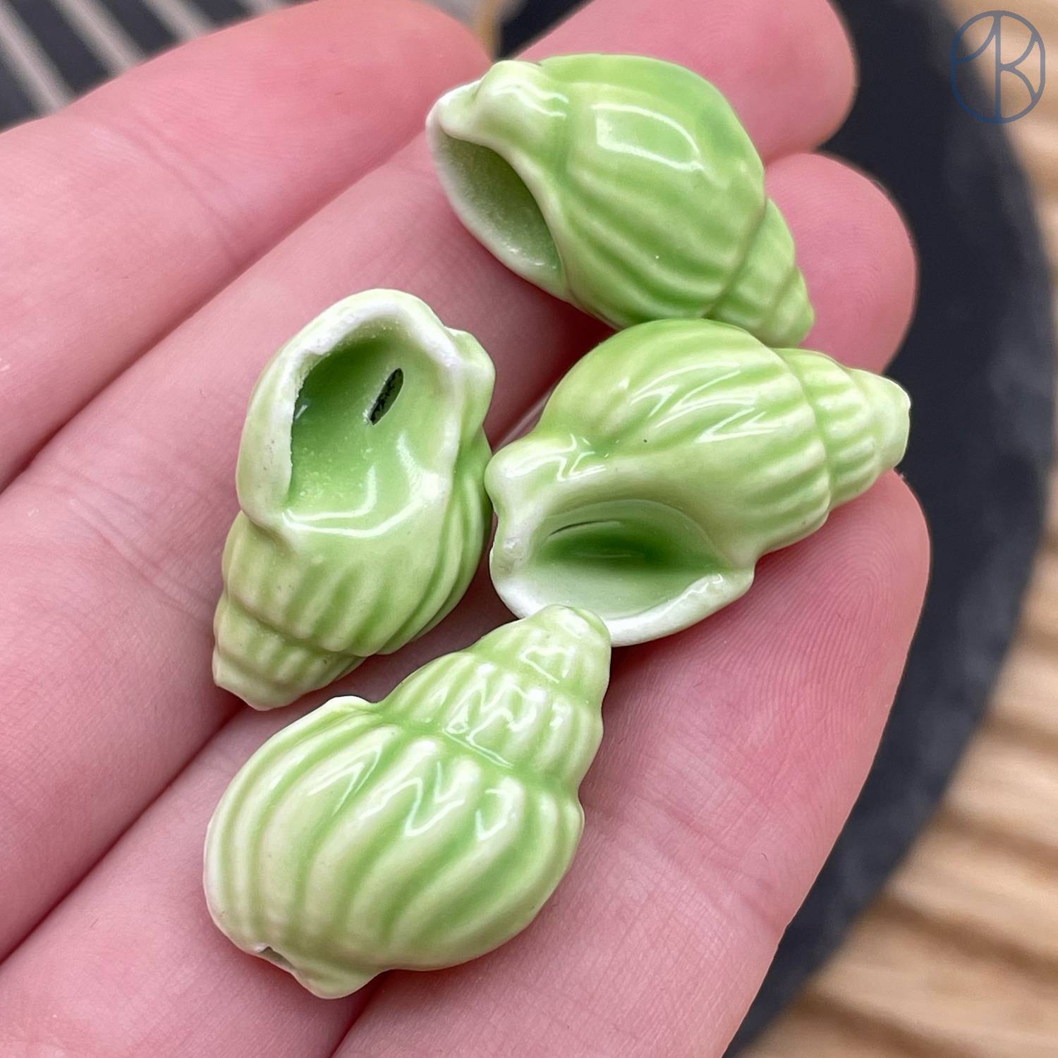 Керамика ракушка, цвет зеленый 21 мм штучно