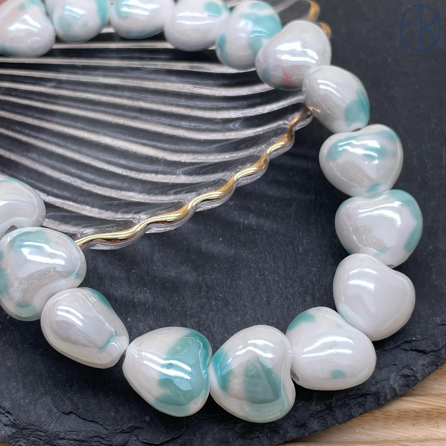 Сердце керамика, цвет бело-бирюзовое 15 мм