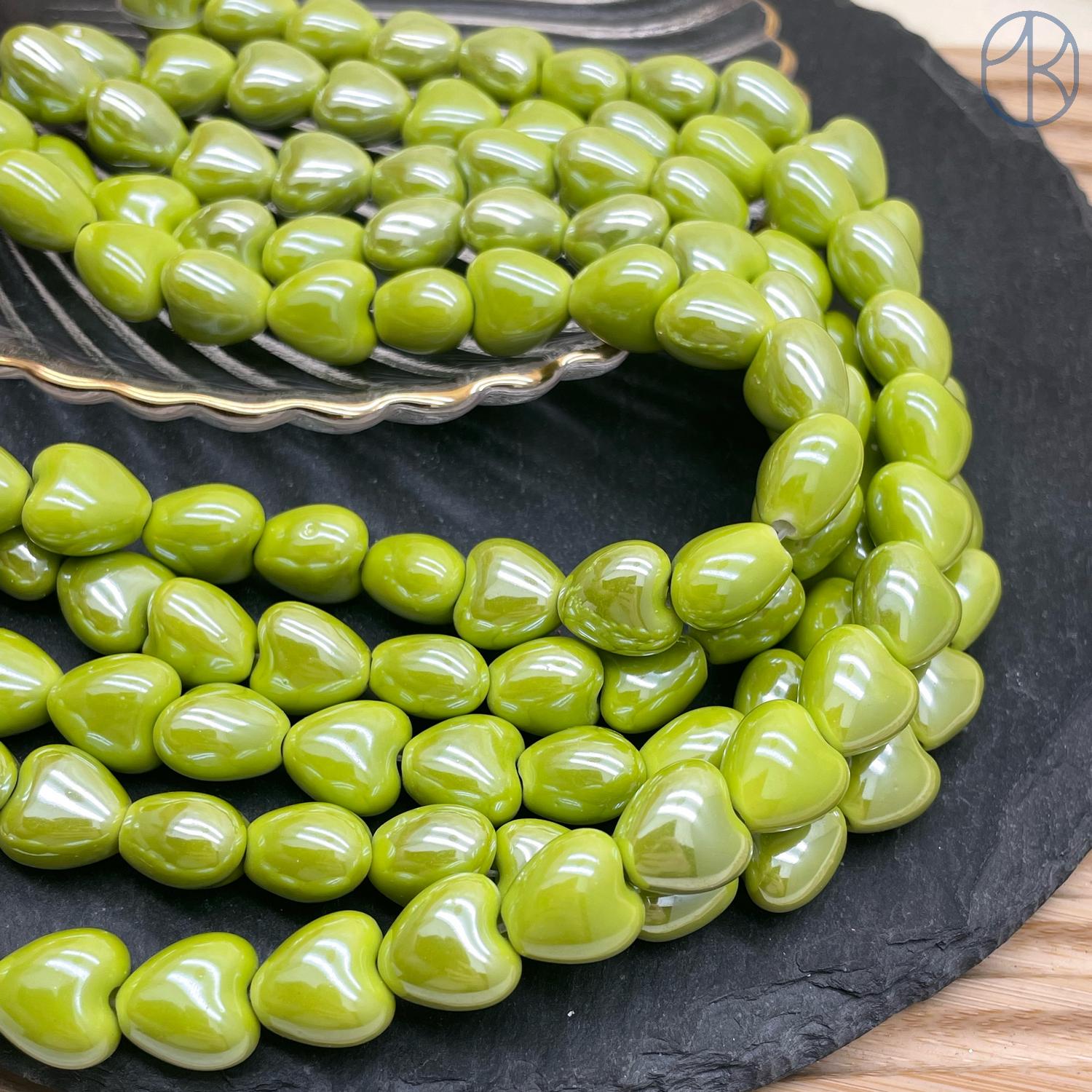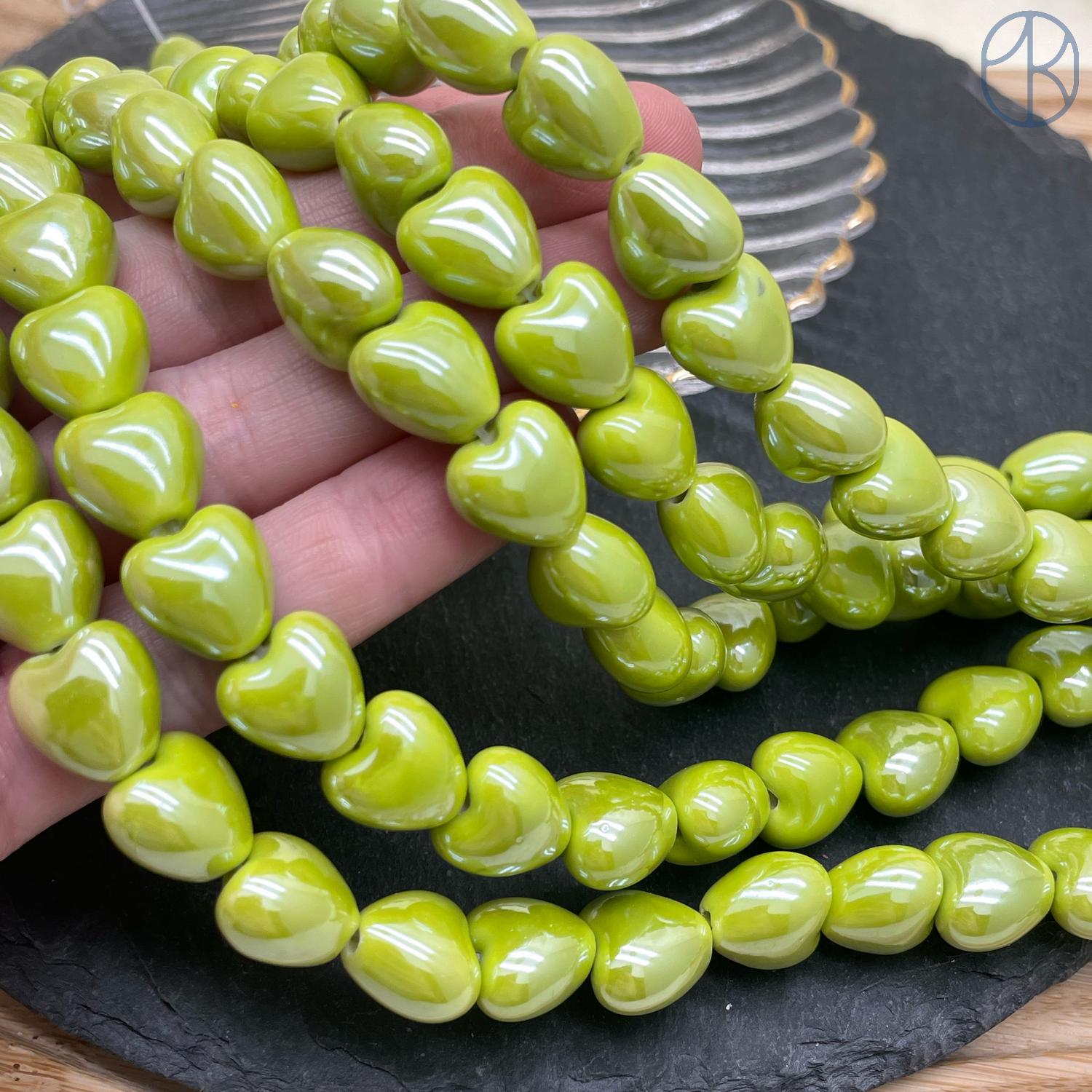 Сердце керамика цвет зеленый 12 мм
