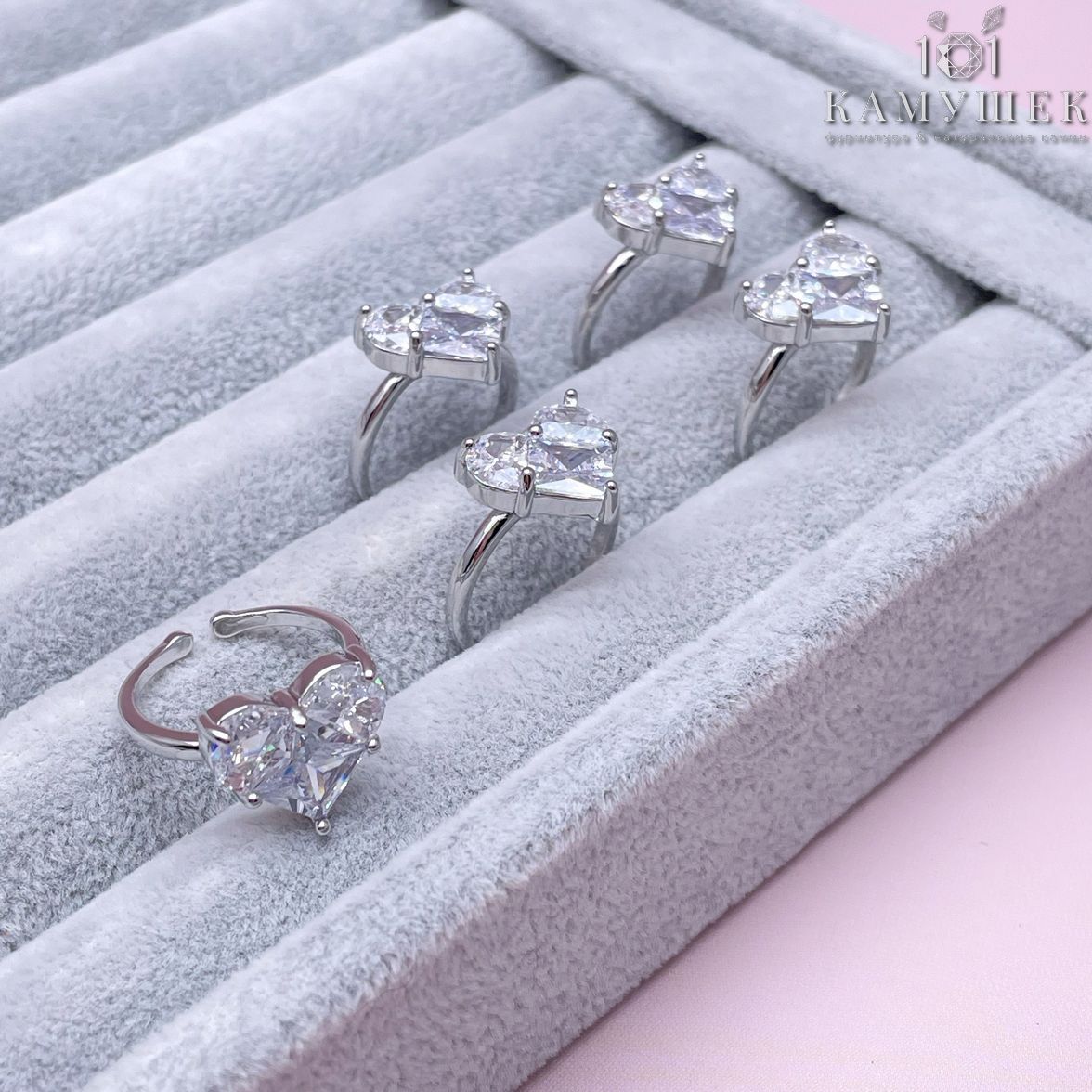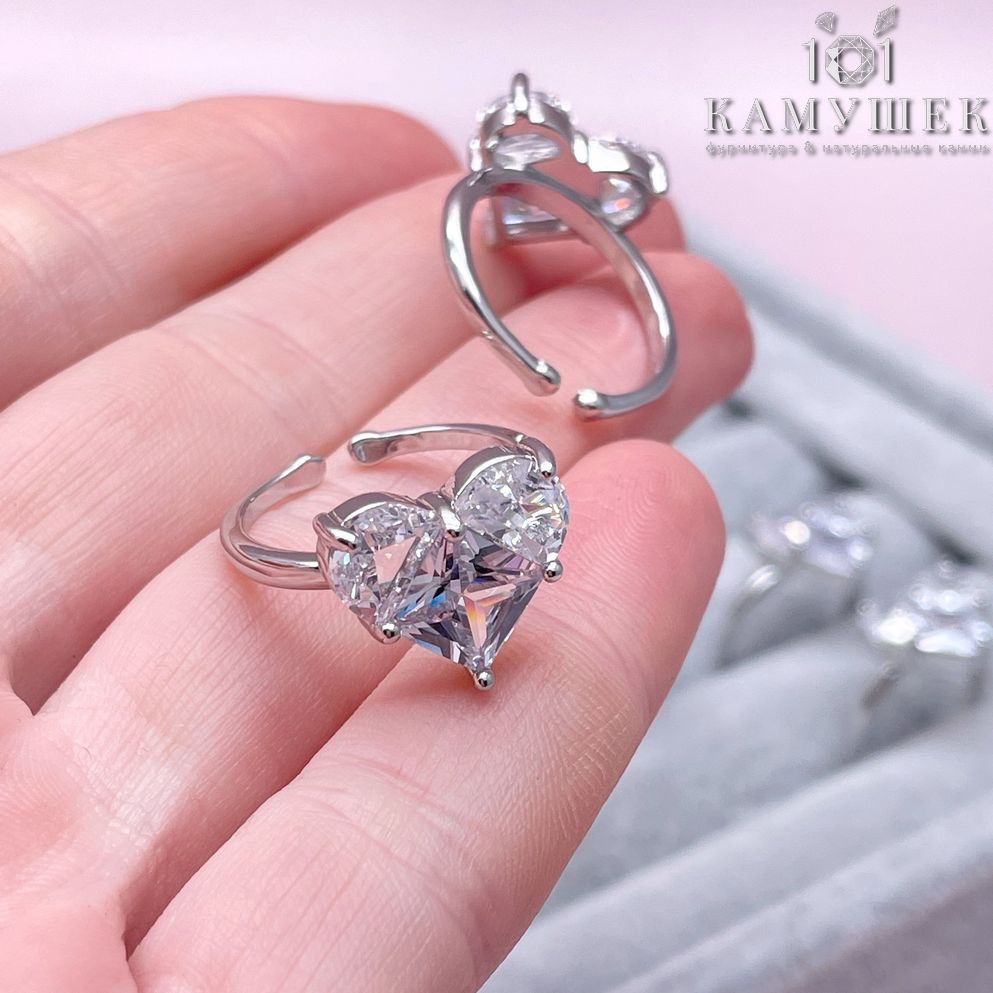 Кольцо сердце цирконы, цвет серебро 20 мм