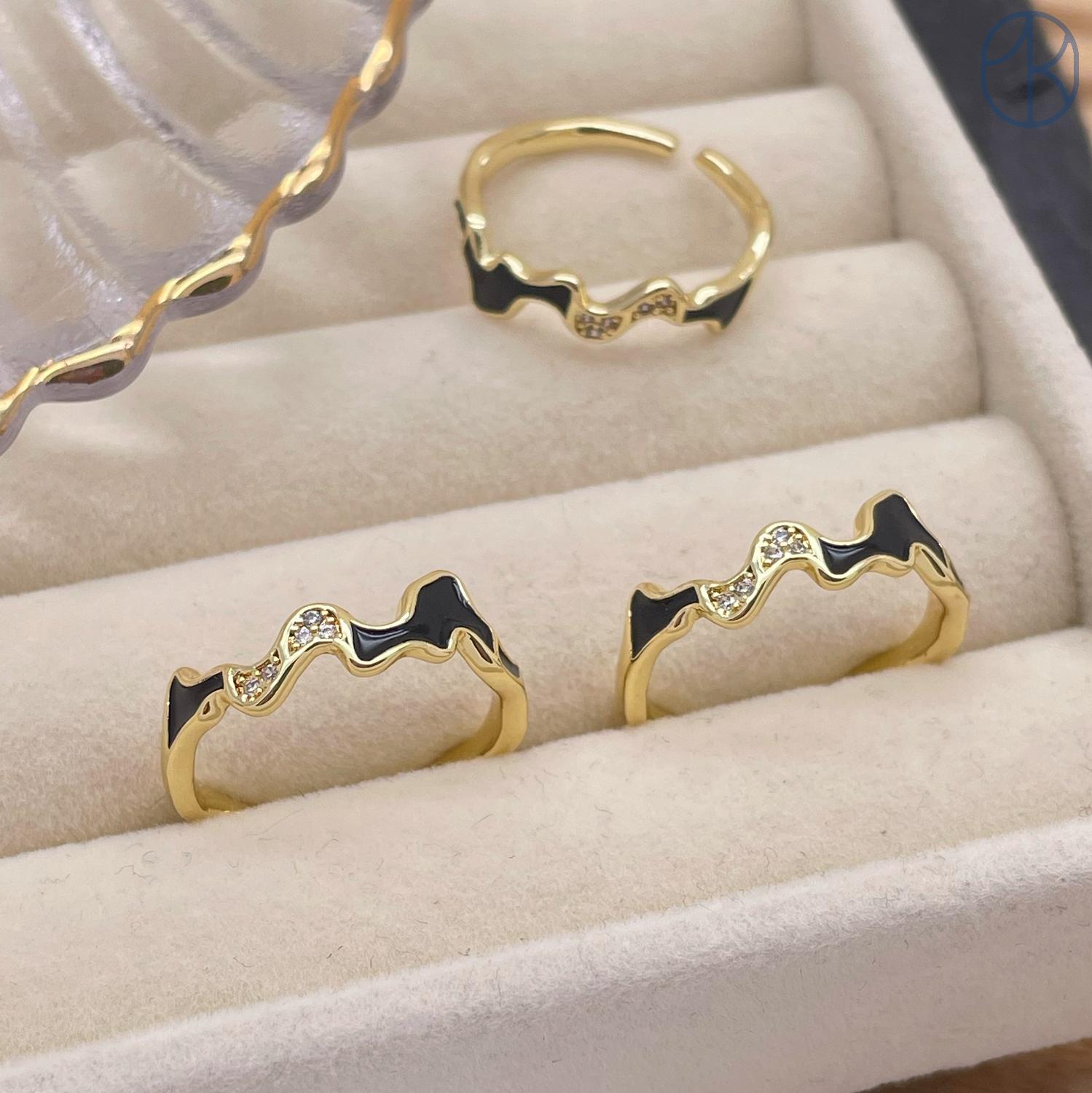 Кольцо фрирформ черная эмаль цвет золото