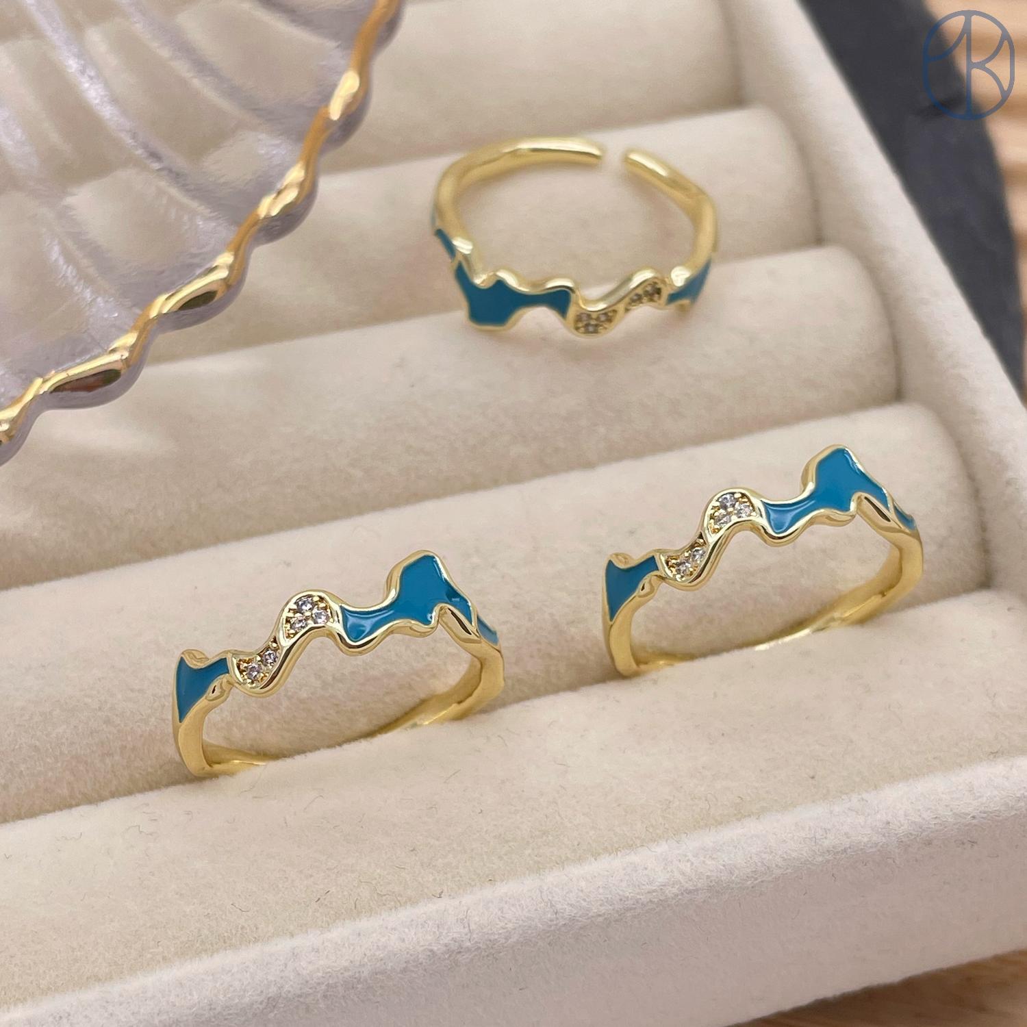 Кольцо фрирформ голубая эмаль цвет золото