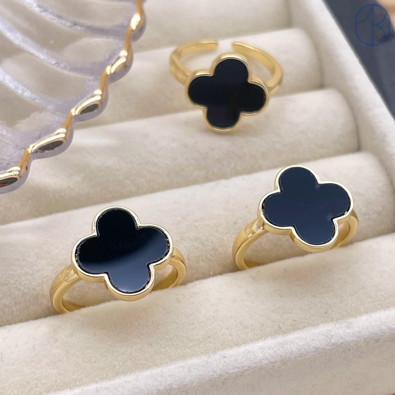 Кольцо клевер черный цвет золото