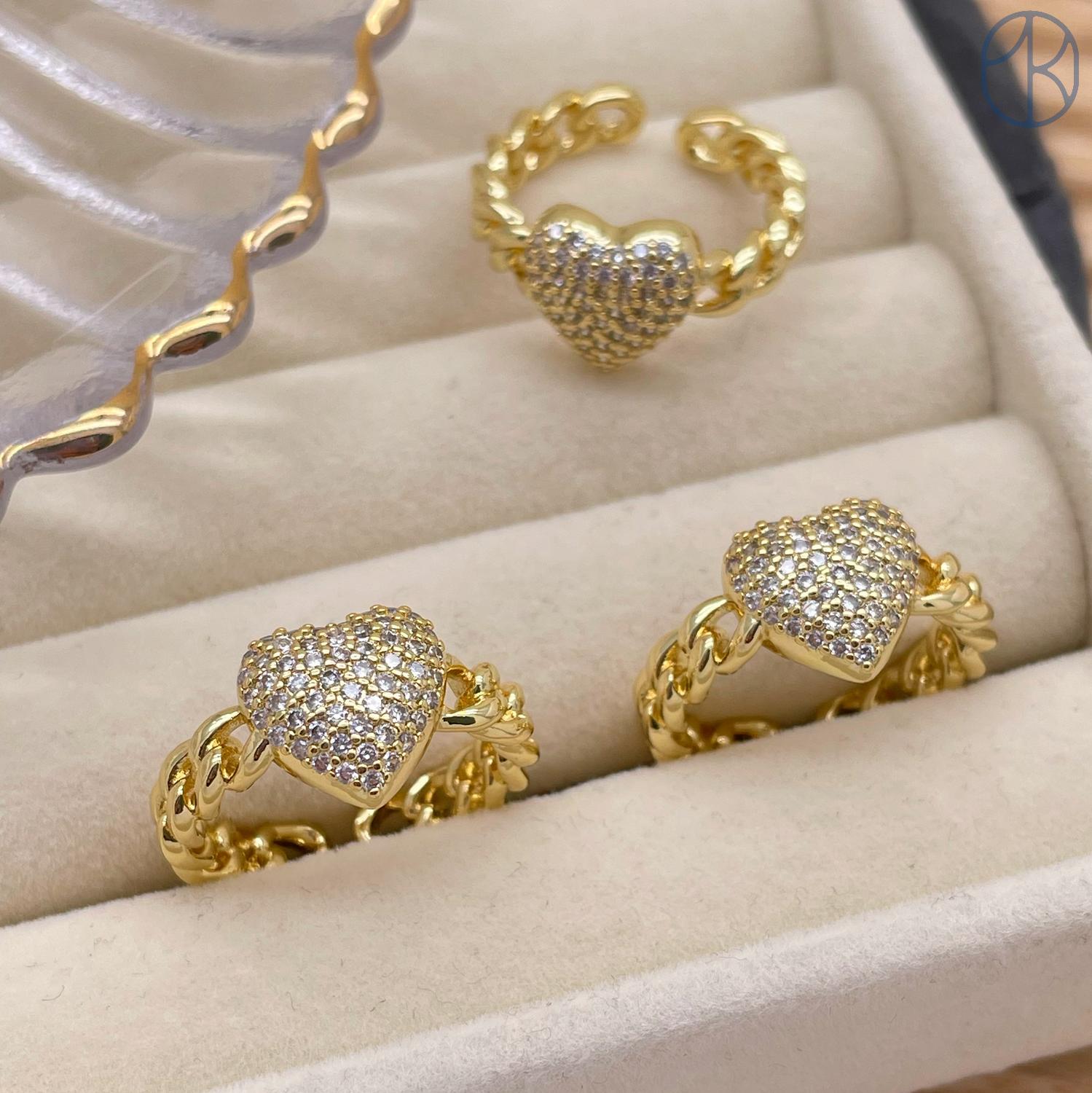 Кольцо сердце цирконы цвет золото