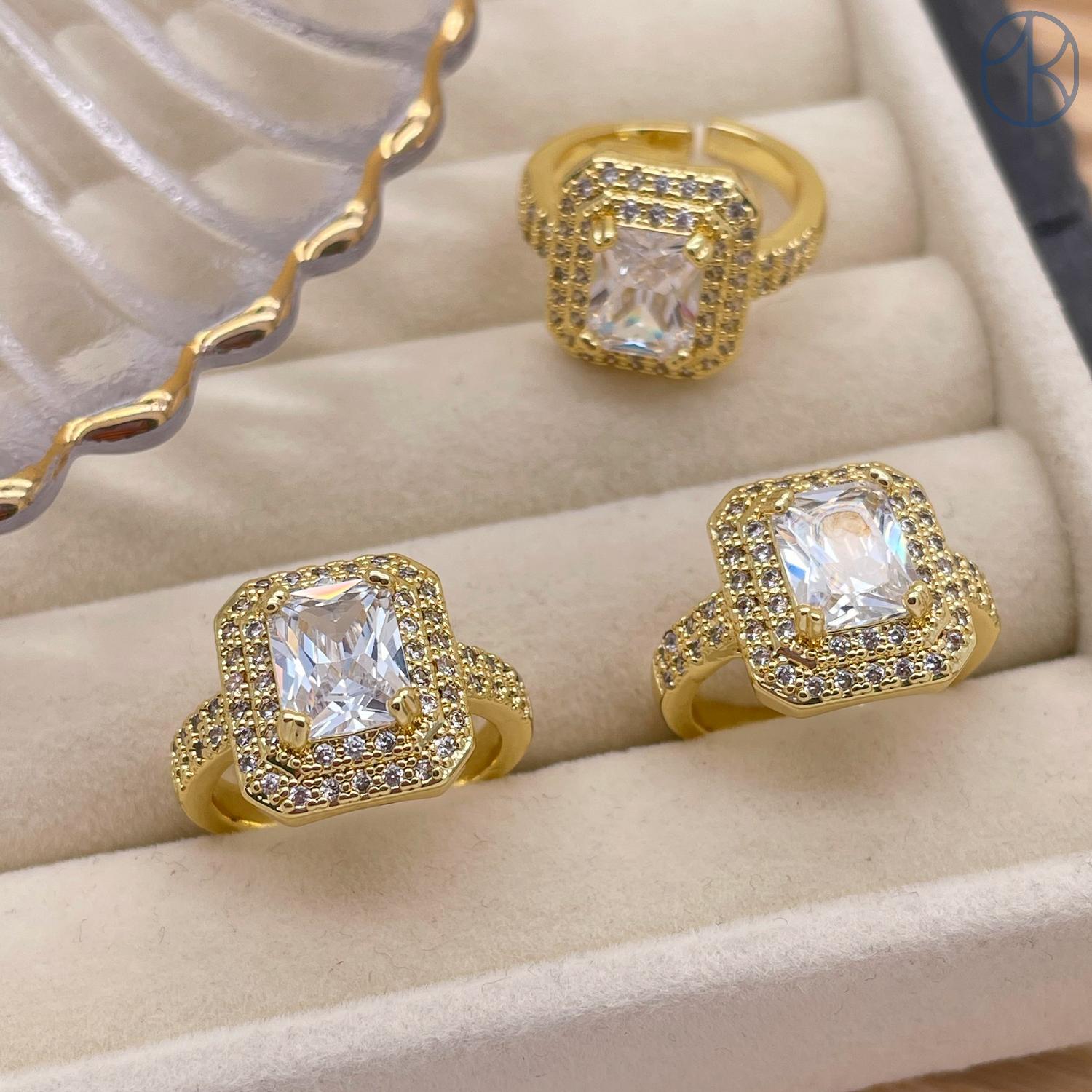 Кольцо циркон цвет золото