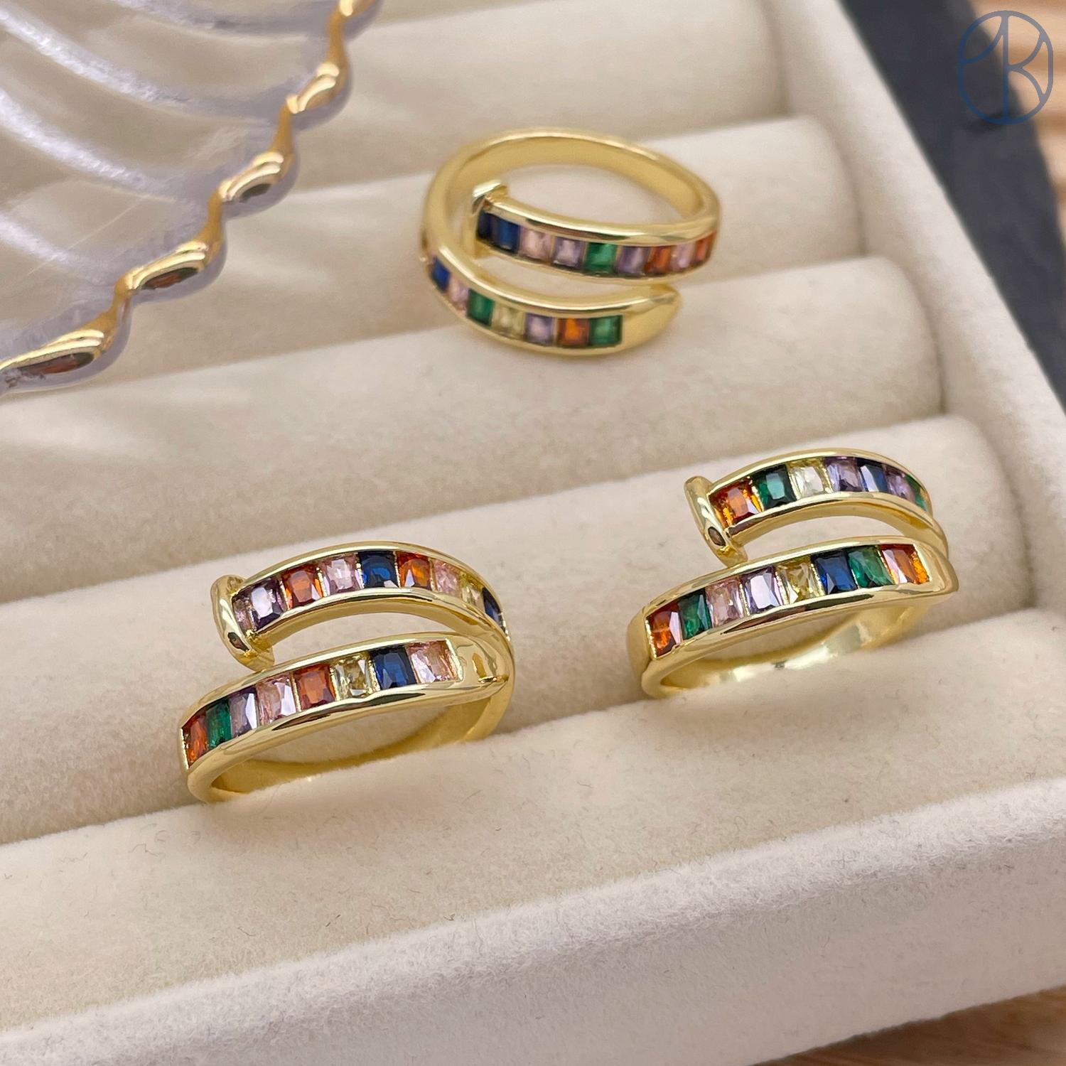Кольцо цирконы микс цвет золото