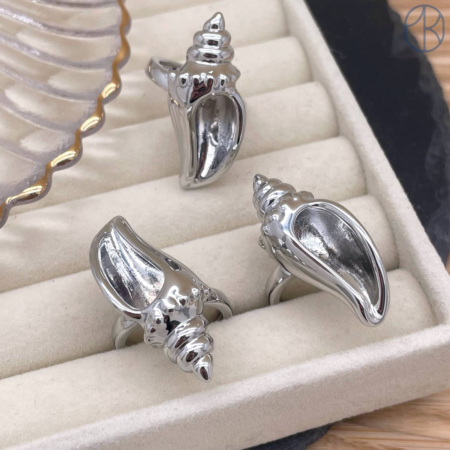 Кольцо ракушка цвет серебро
