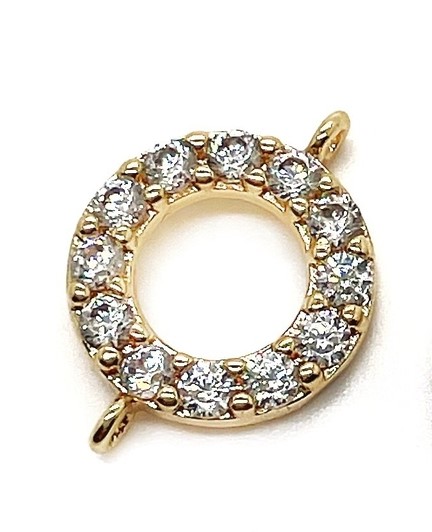 Коннектор кольцо цирконы, цвет золото 10 мм