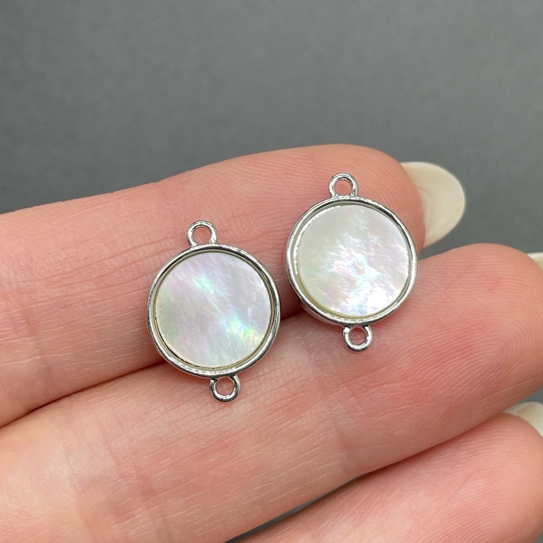 Коннекторр круг белый перламутр, цвет серебро 12 мм