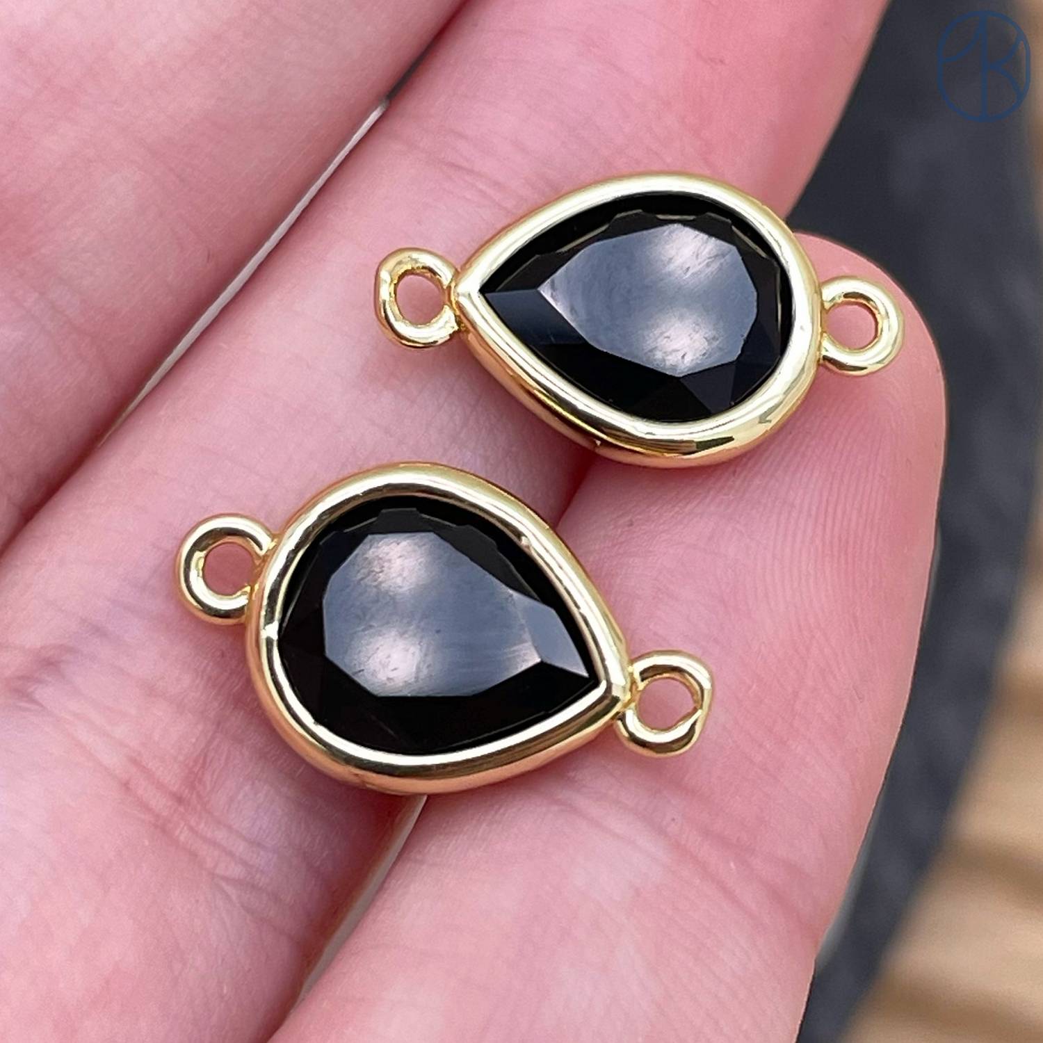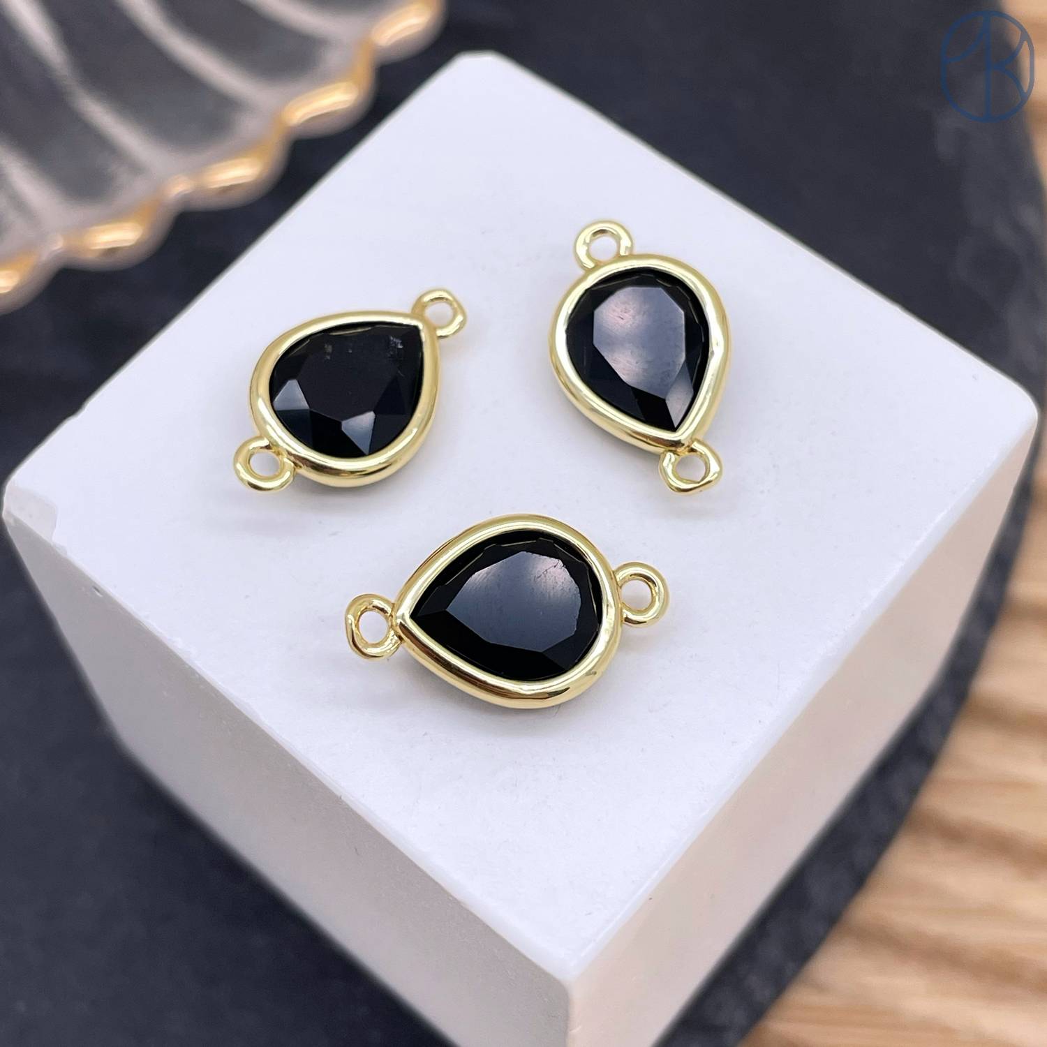 Коннектор капля огранка агат черный, цвет золото ~ 11 мм