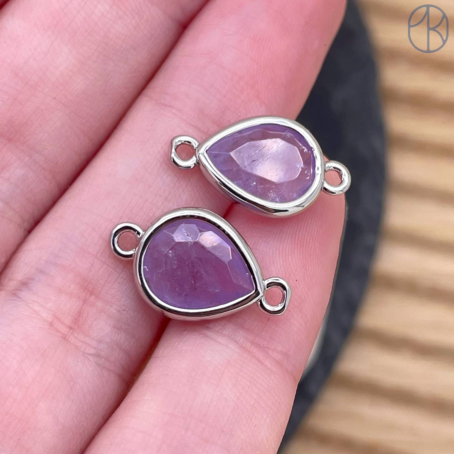 Коннектор капля огранка аметист, цвет серебро ~ 11 мм